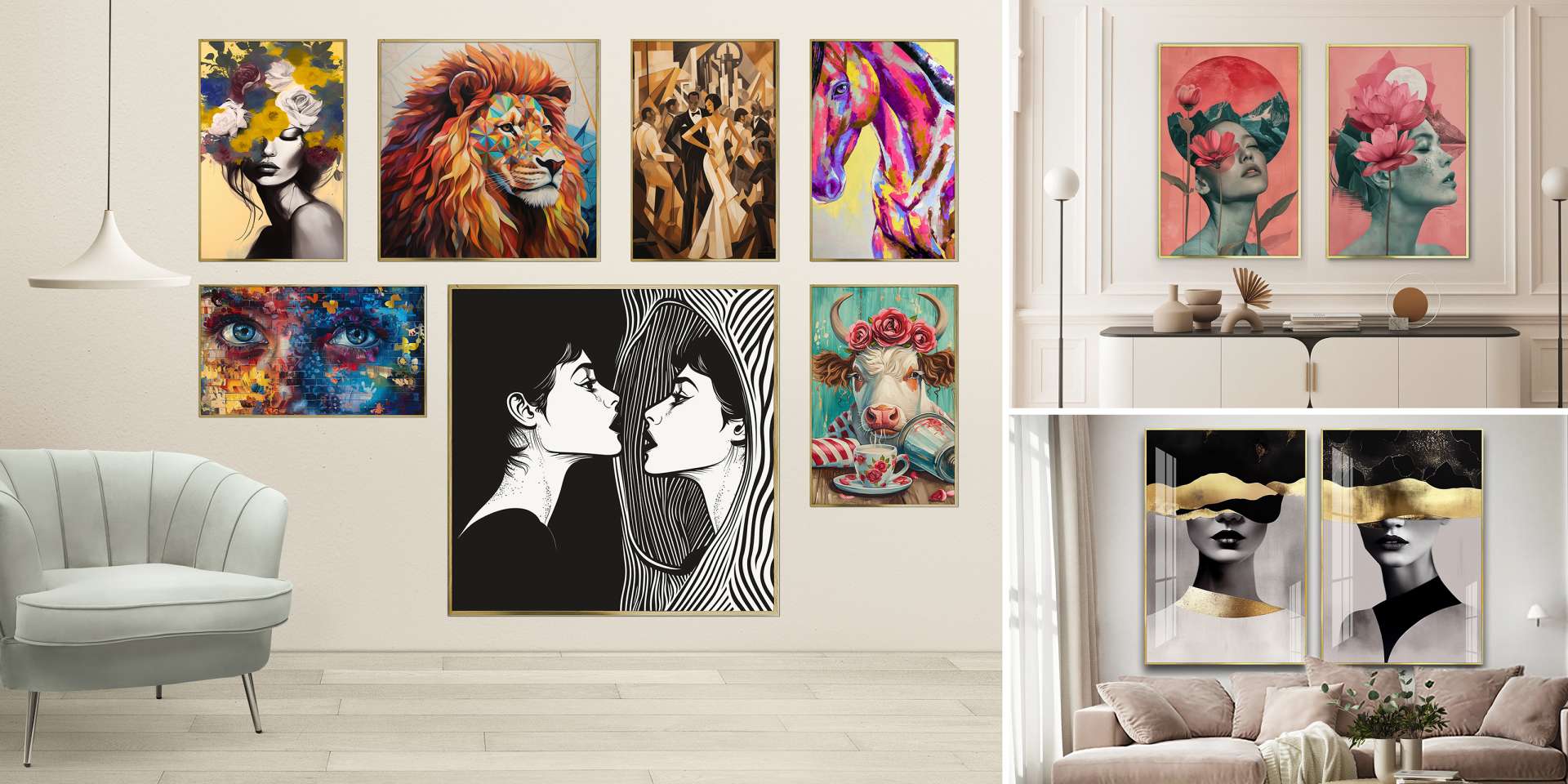 Golden SilenceMystic Black Hair Burst canvas Art