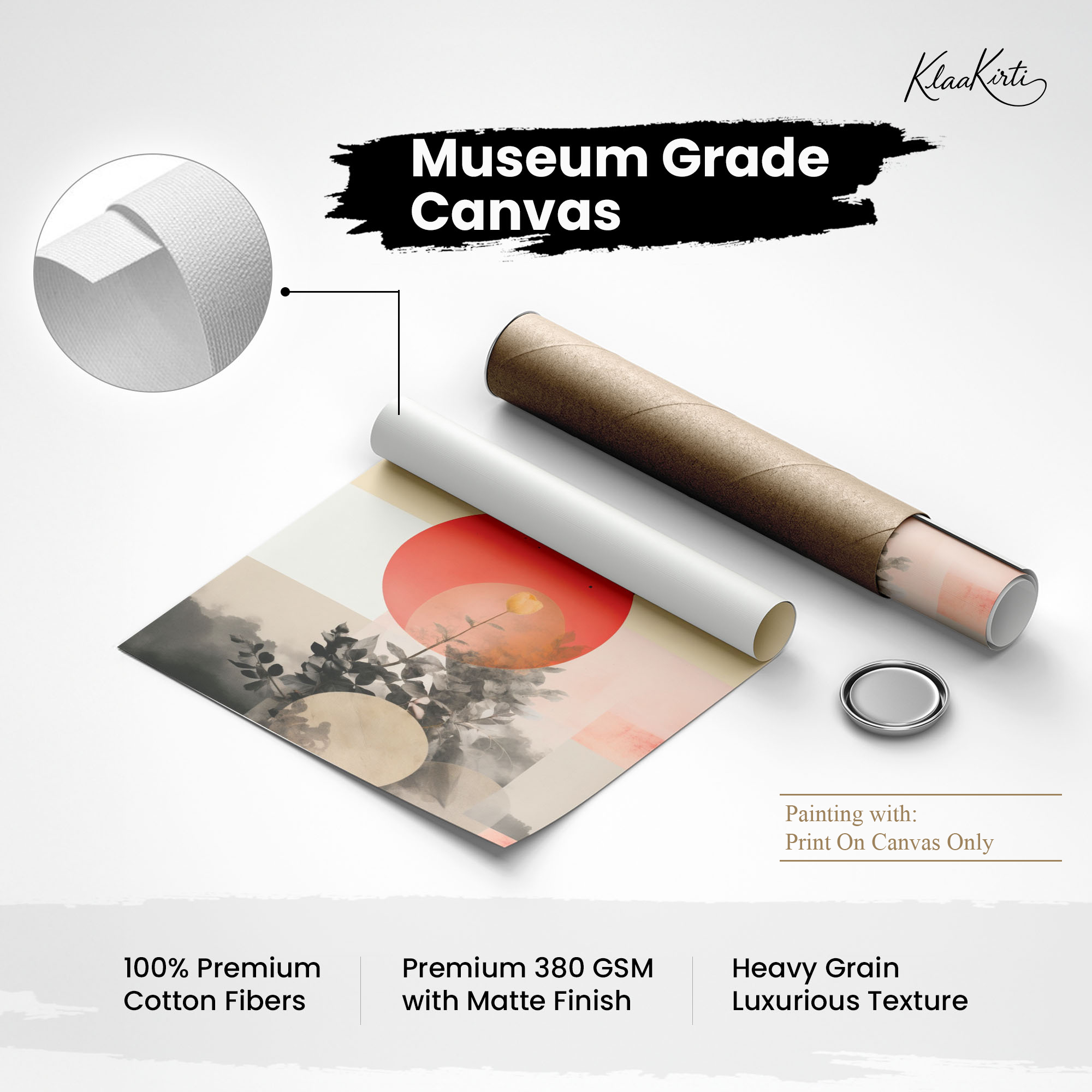 • Regular art prints can vary in quality depending on the materials and printing techniques used. At Klaakirti, our digital canvas prints are created using advanced printing technology and fade-resistant inks on premium, gallery-grade canvas. This ensures sharp detail, rich color, and long-lasting durability — giving you a piece that looks and feels truly premium.