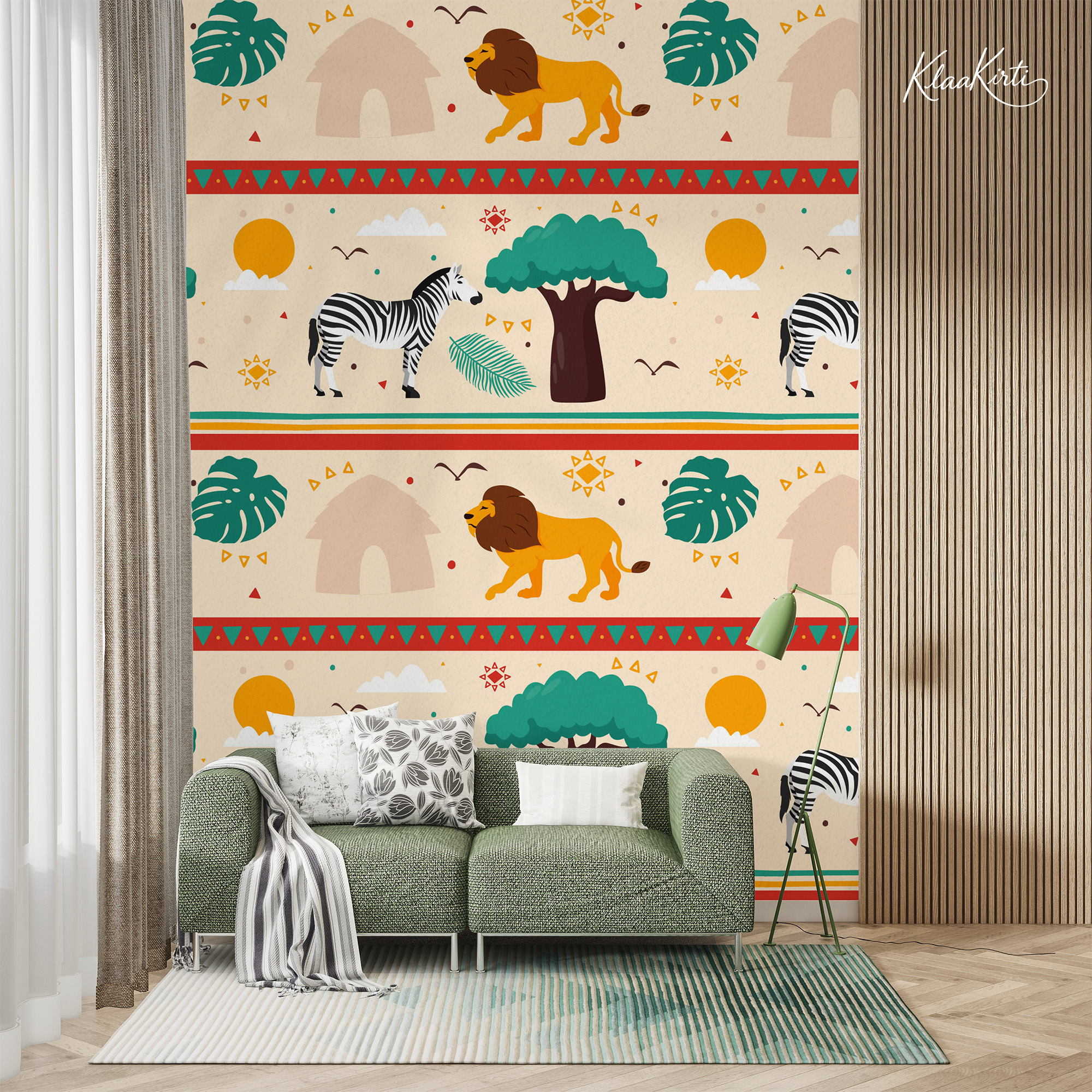 Elevate Your Walls with Boho Safari Animals Kids Premium Wallpaper