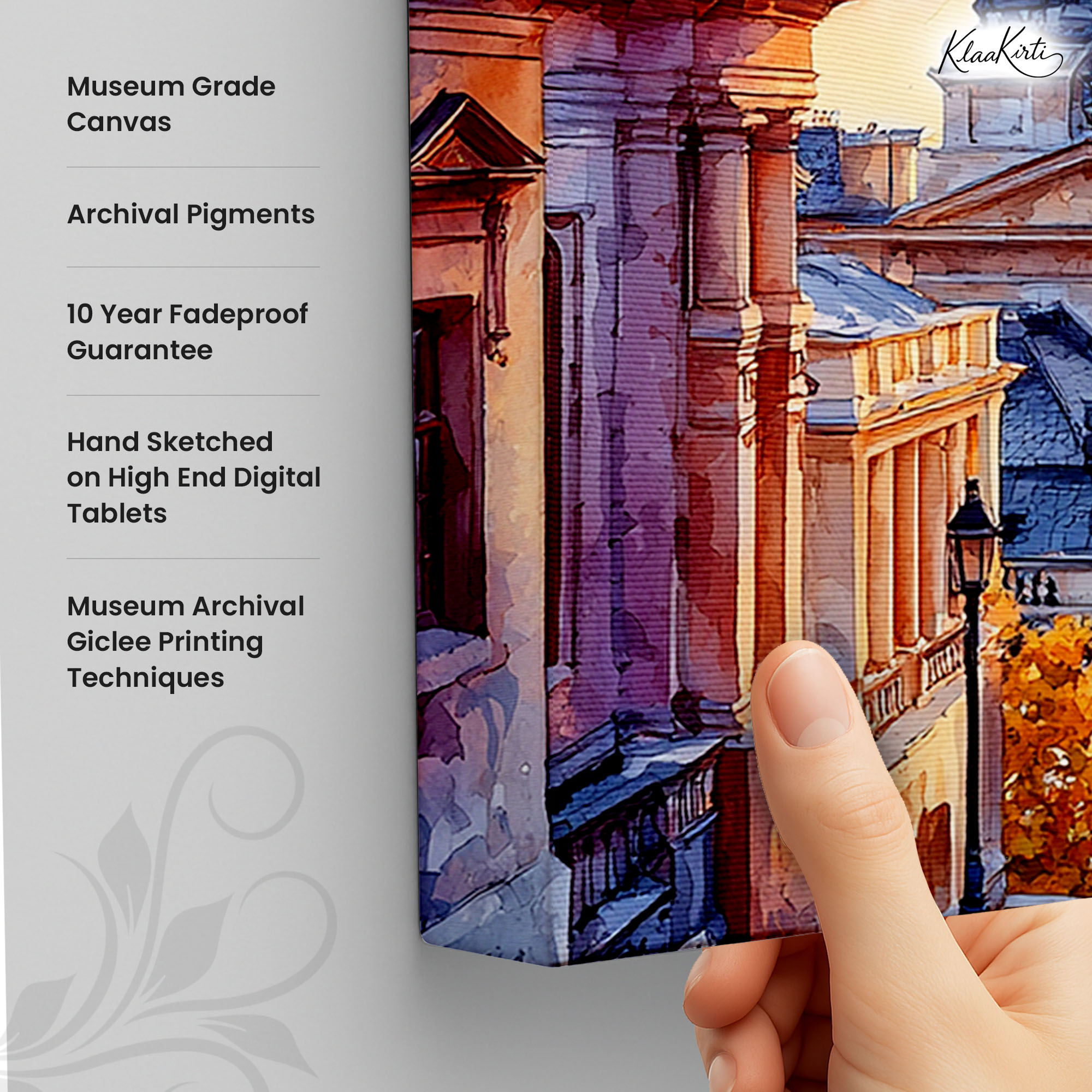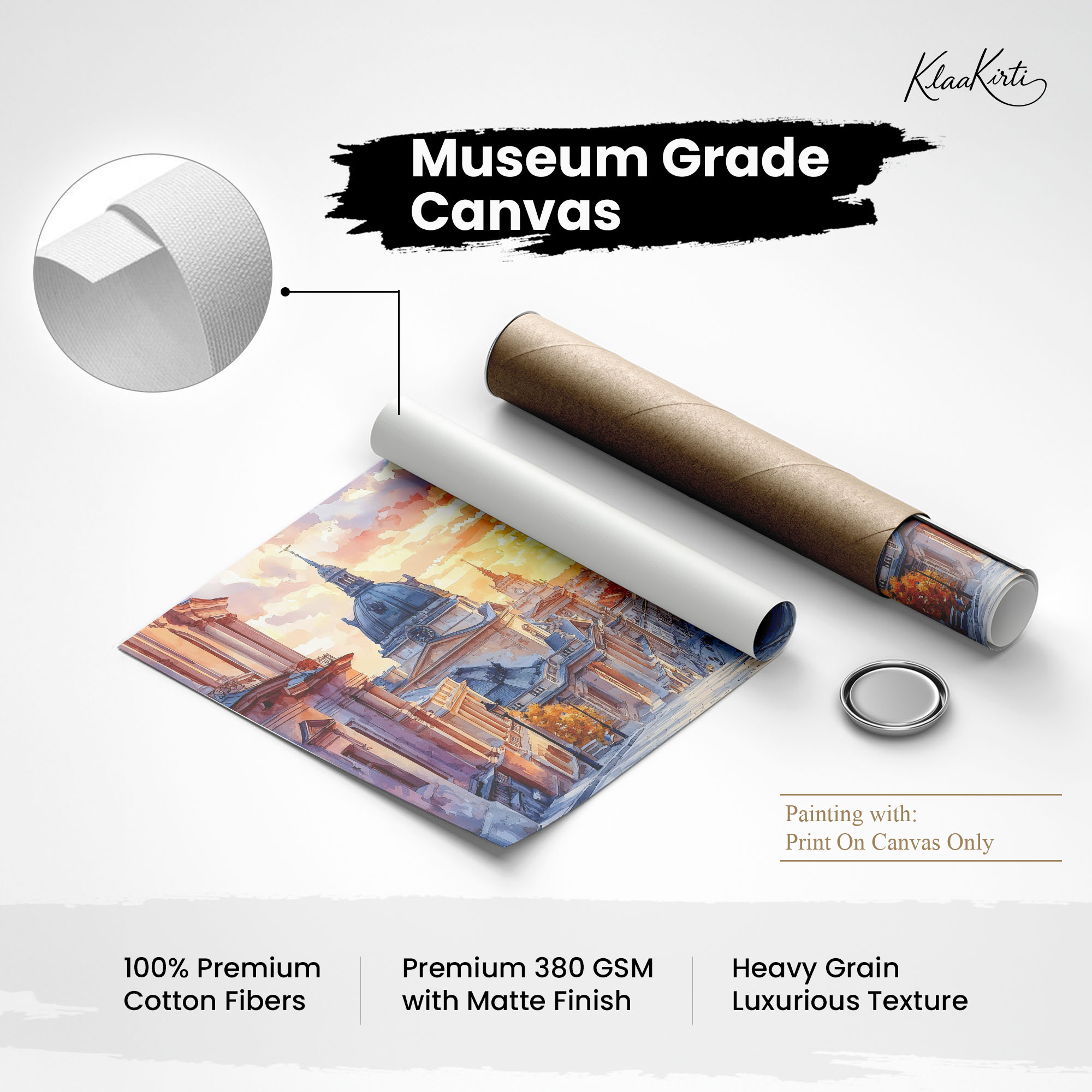 • Regular art prints can vary in quality depending on the materials and printing techniques used. At Klaakirti, our digital canvas prints are created using advanced printing technology and fade-resistant inks on premium, gallery-grade canvas. This ensures sharp detail, rich color, and long-lasting durability — giving you a piece that looks and feels truly premium.