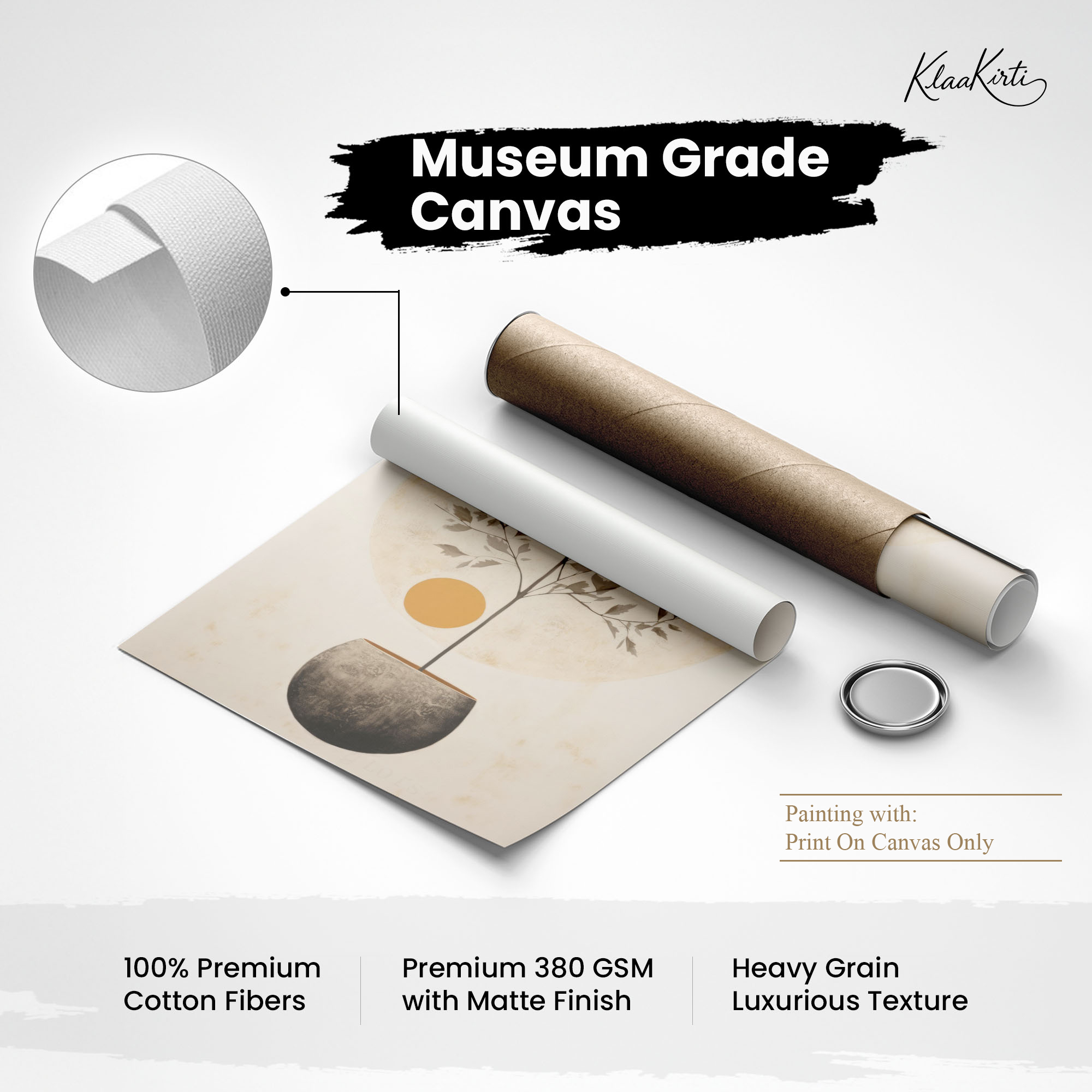 • Regular art prints can vary in quality depending on the materials and printing techniques used. At Klaakirti, our digital canvas prints are created using advanced printing technology and fade-resistant inks on premium, gallery-grade canvas. This ensures sharp detail, rich color, and long-lasting durability — giving you a piece that looks and feels truly premium.