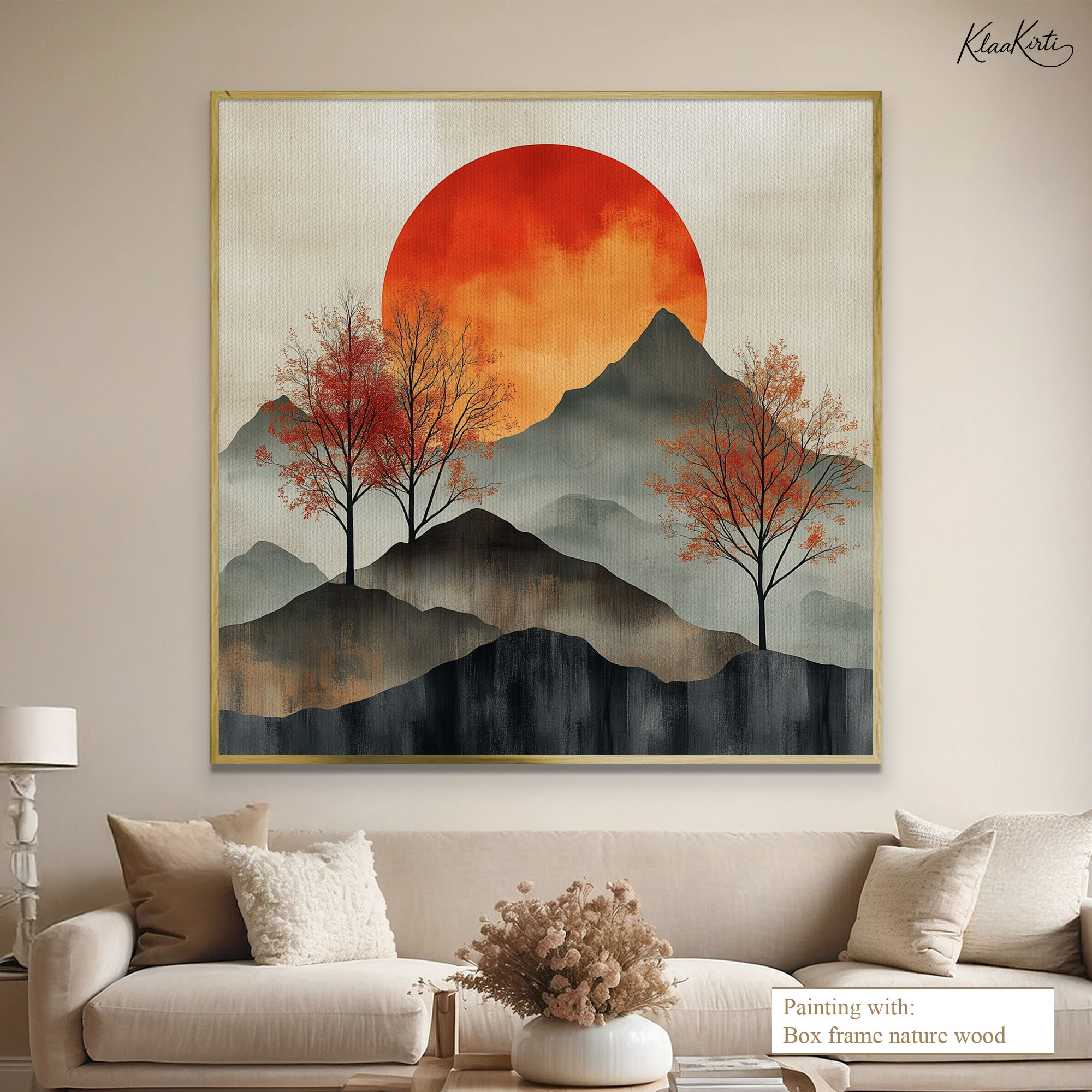 I wanted a sophisticated look for my home office. I ordered a large canvas print from Kalaakirti. The packaging was very secure (I was worried about damage during shipping), and the print quality is crystal clear. It gives a very professional yet warm touch to my workspace.