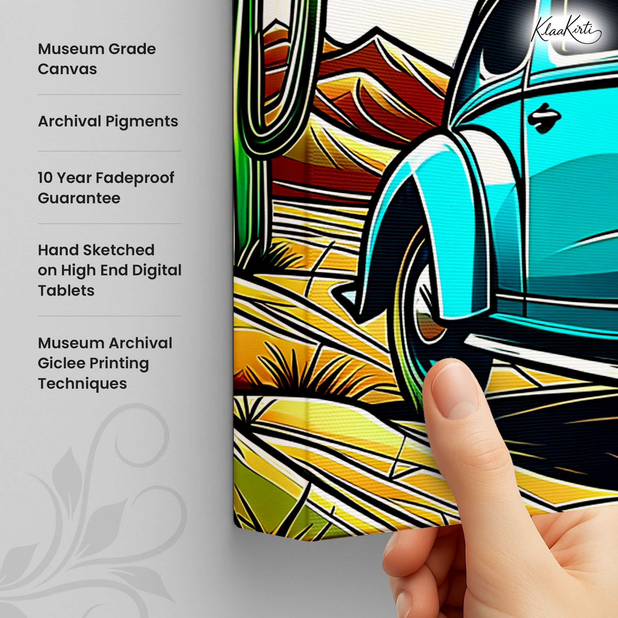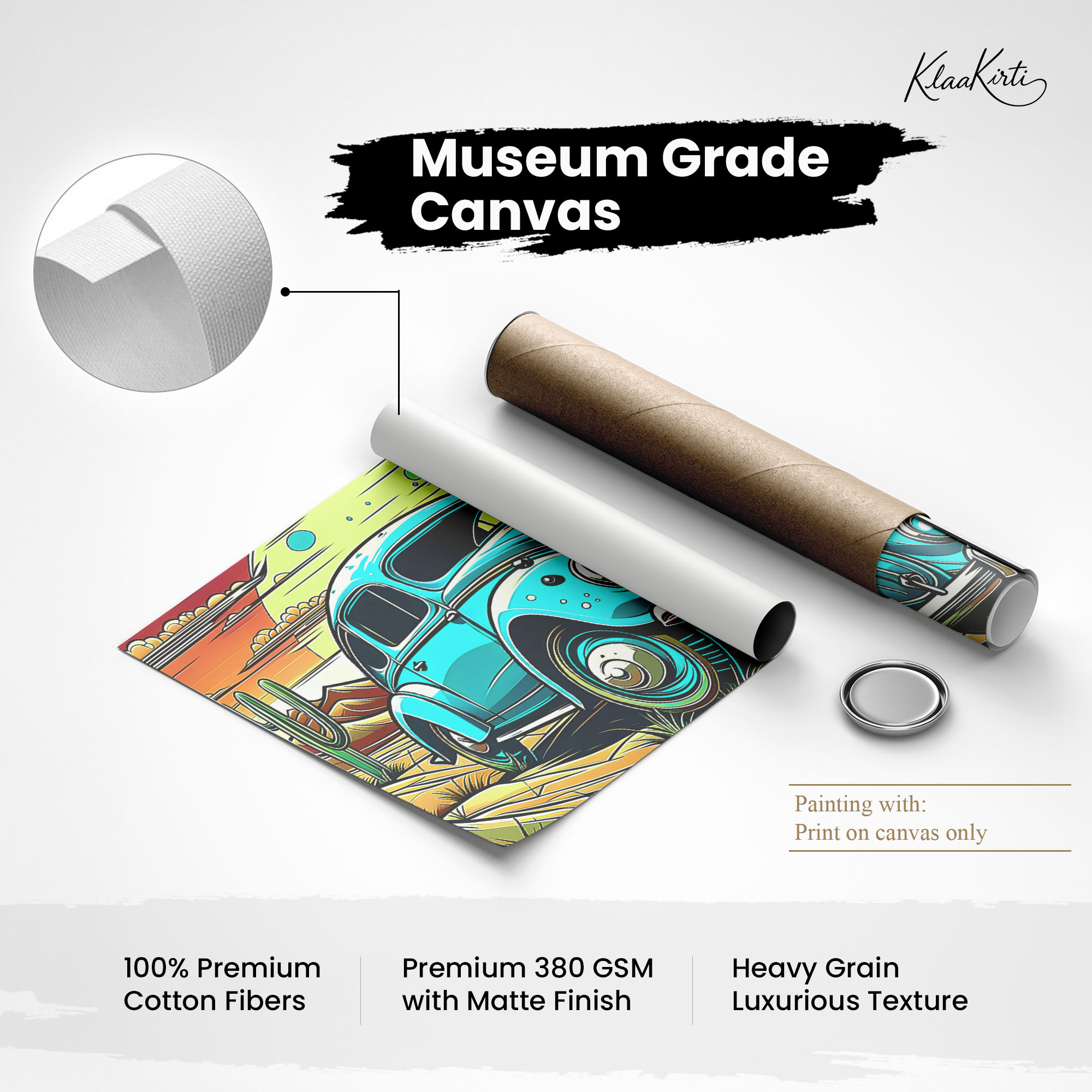 • Regular art prints can vary in quality depending on the materials and printing techniques used. At Klaakirti, our digital canvas prints are created using advanced printing technology and fade-resistant inks on premium, gallery-grade canvas. This ensures sharp detail, rich color, and long-lasting durability — giving you a piece that looks and feels truly premium.