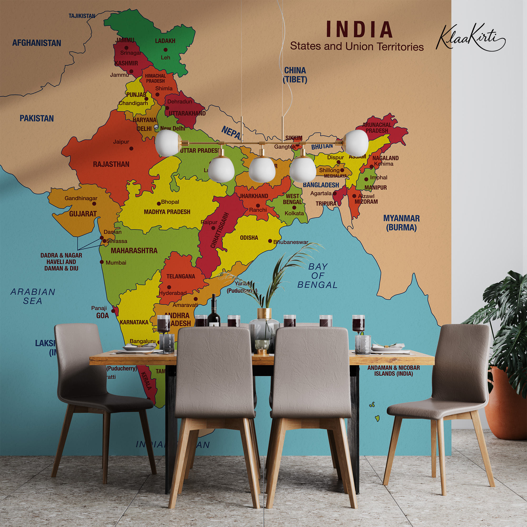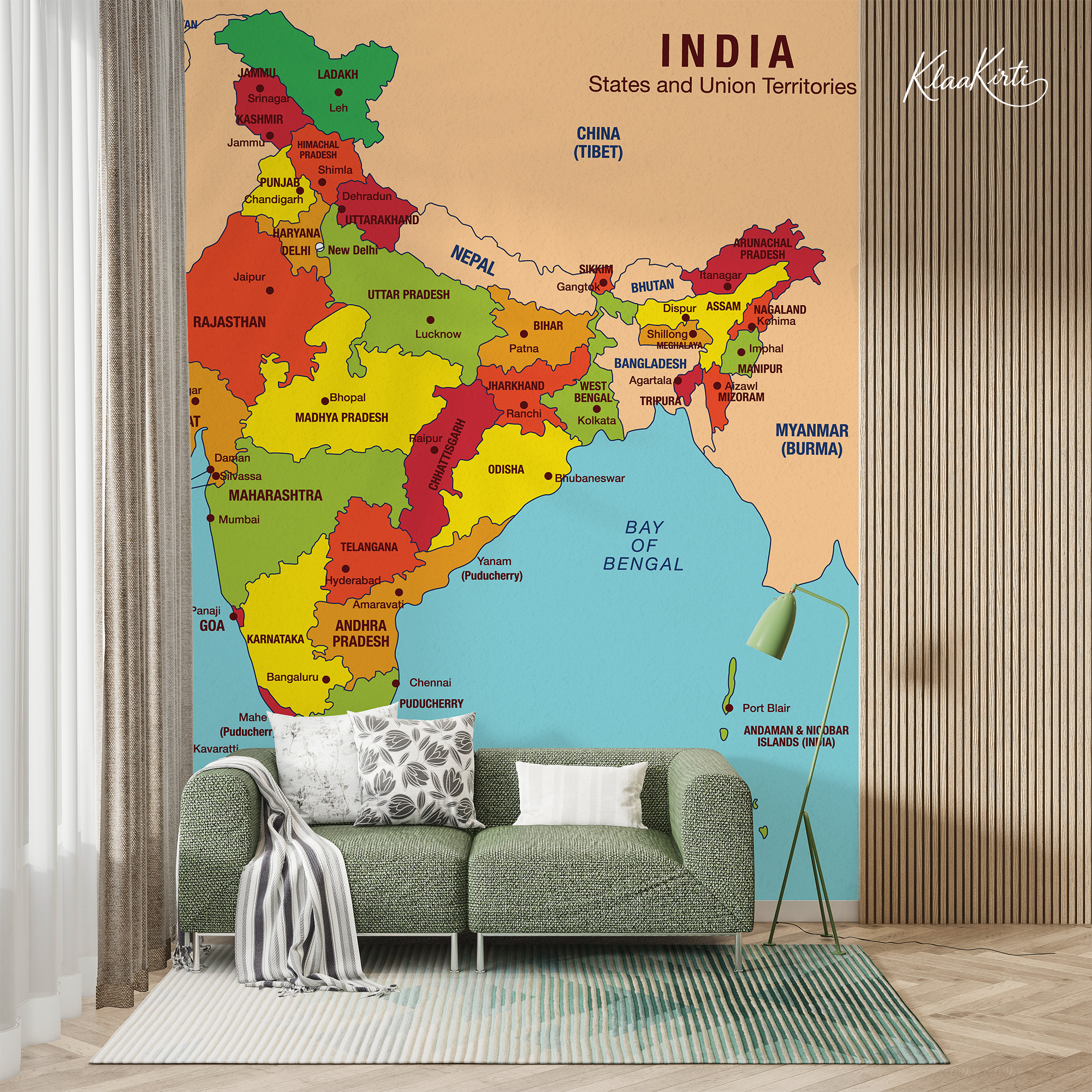Elevate Your Walls with Detailed Political Map of India Kids Premium Wallpaper