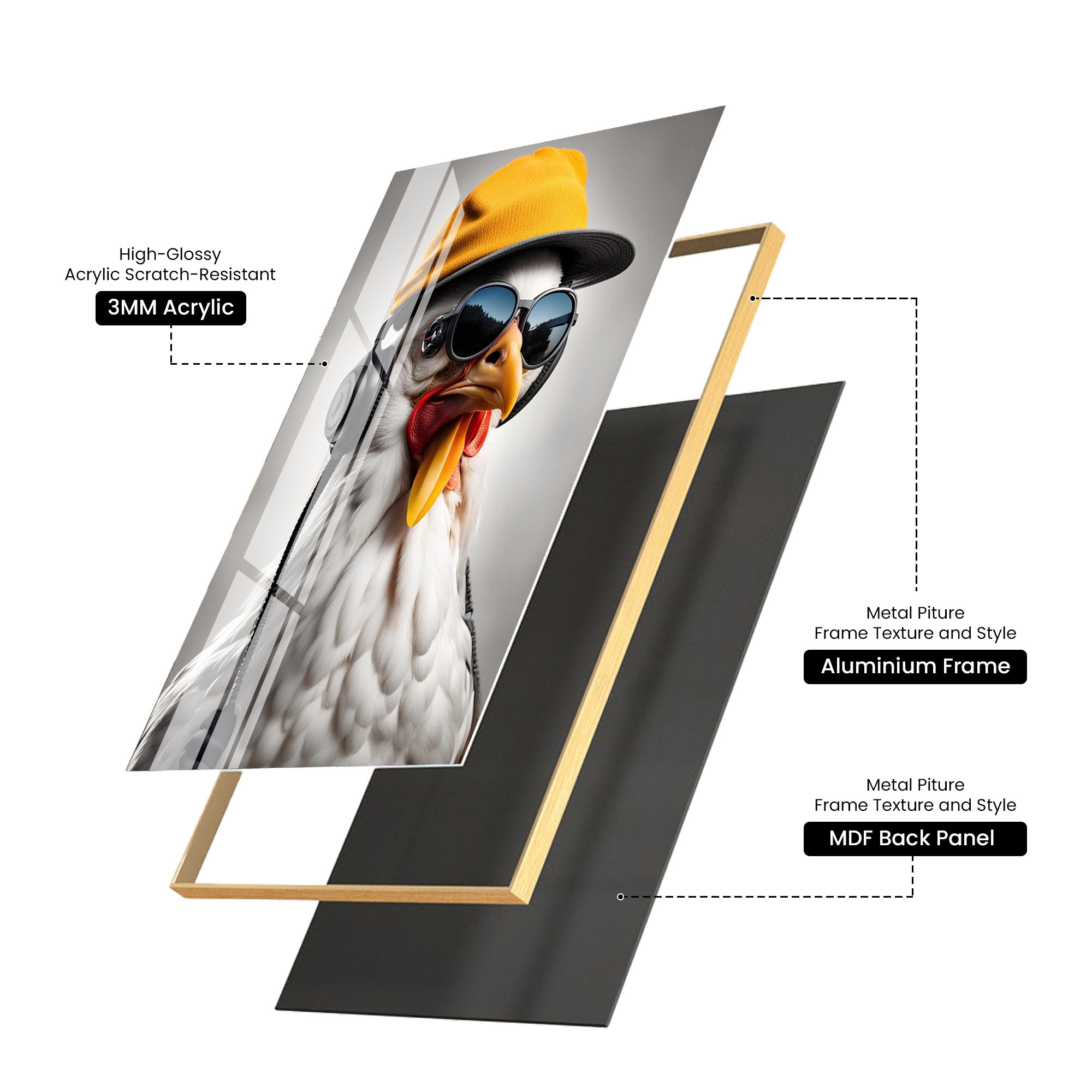 DJ Cluck Rooster Acrylic Wall Art for Modern Interiors