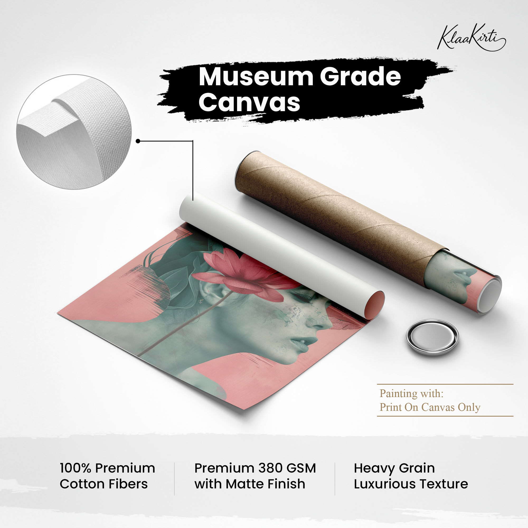 • Regular art prints can vary in quality depending on the materials and printing techniques used. At Klaakirti, our digital canvas prints are created using advanced printing technology and fade-resistant inks on premium, gallery-grade canvas. This ensures sharp detail, rich color, and long-lasting durability — giving you a piece that looks and feels truly premium.