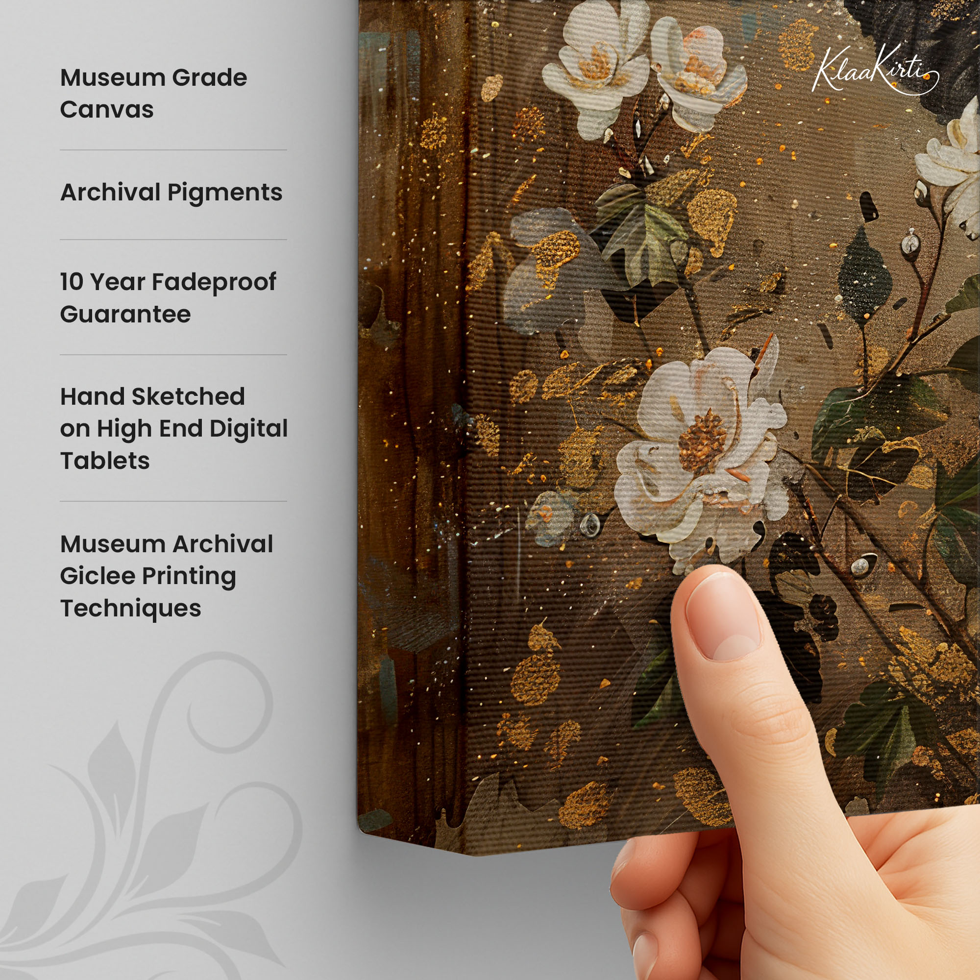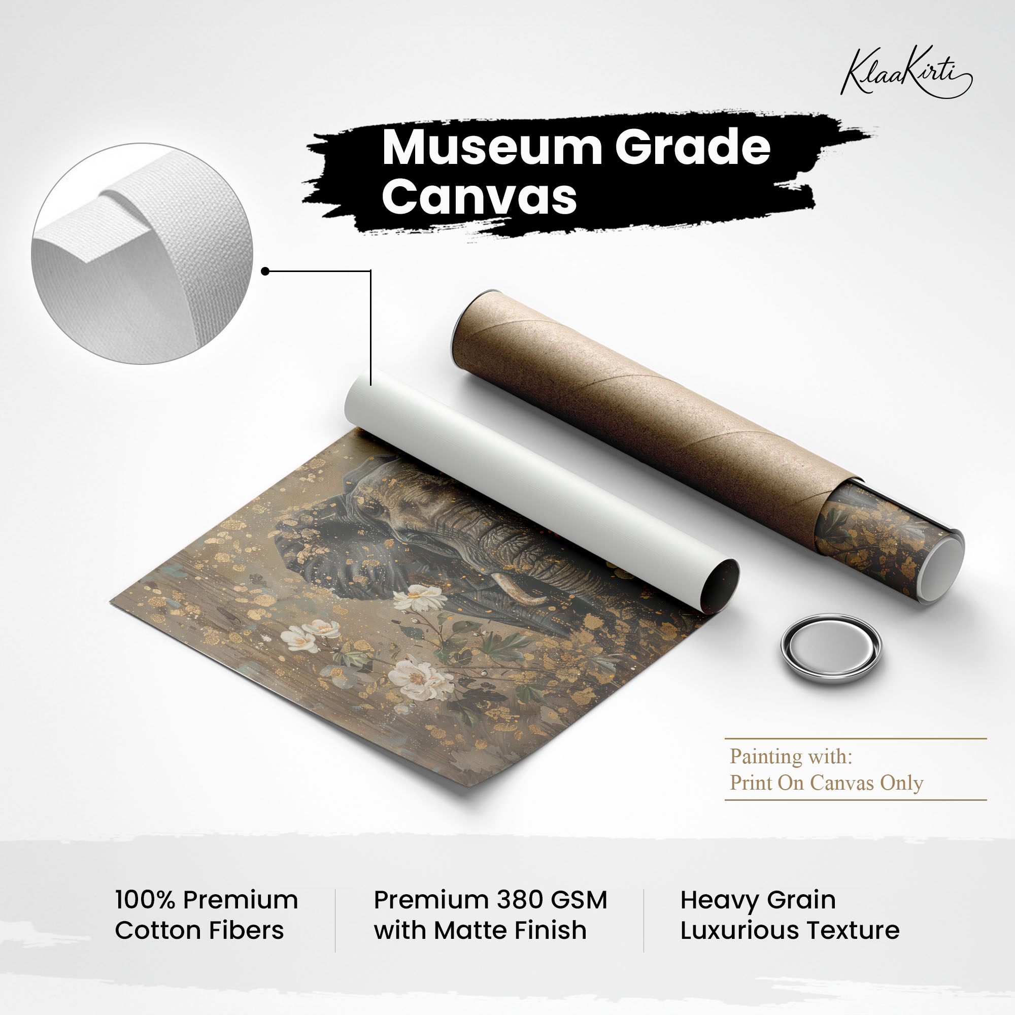 • Regular art prints can vary in quality depending on the materials and printing techniques used. At Klaakirti, our digital canvas prints are created using advanced printing technology and fade-resistant inks on premium, gallery-grade canvas. This ensures sharp detail, rich color, and long-lasting durability — giving you a piece that looks and feels truly premium.