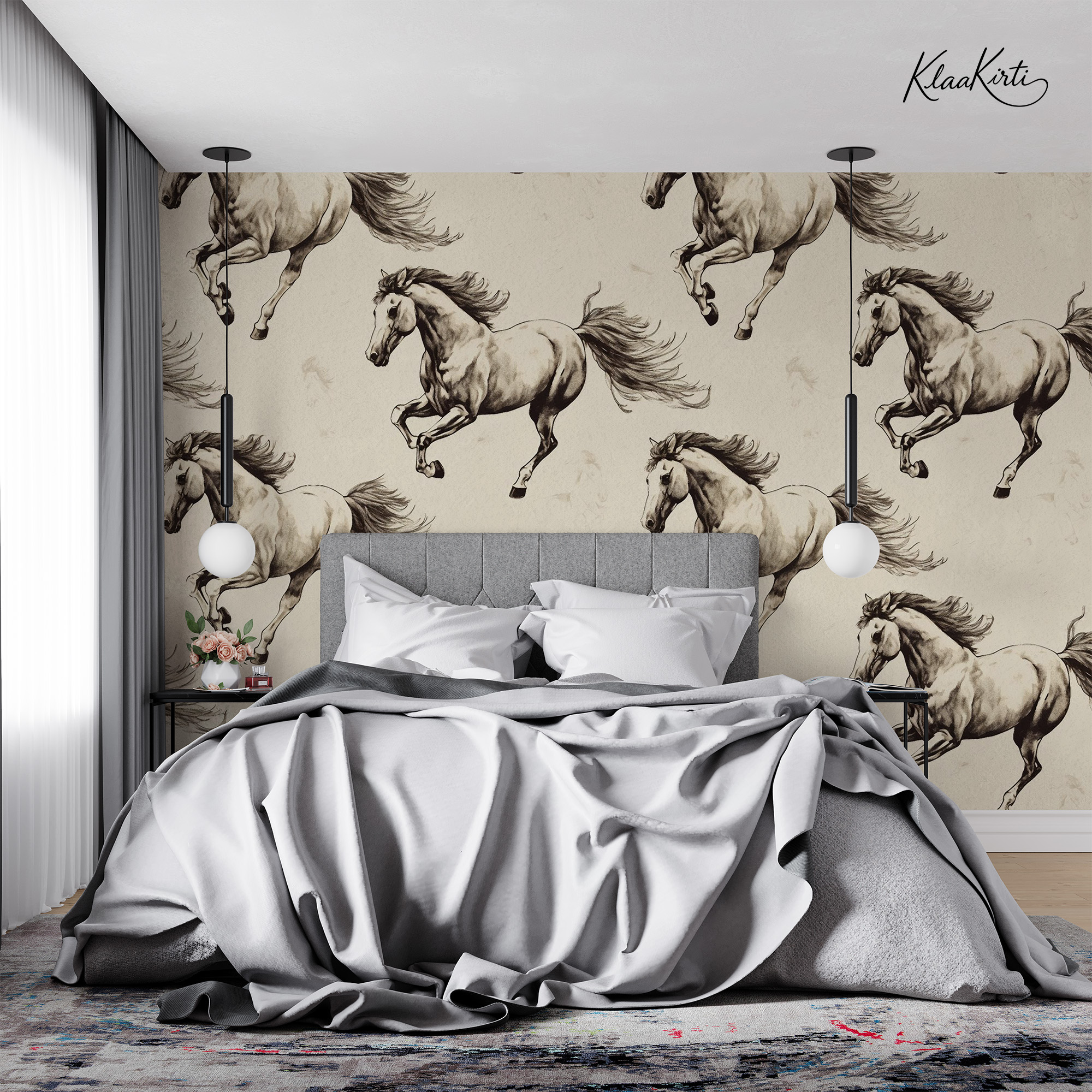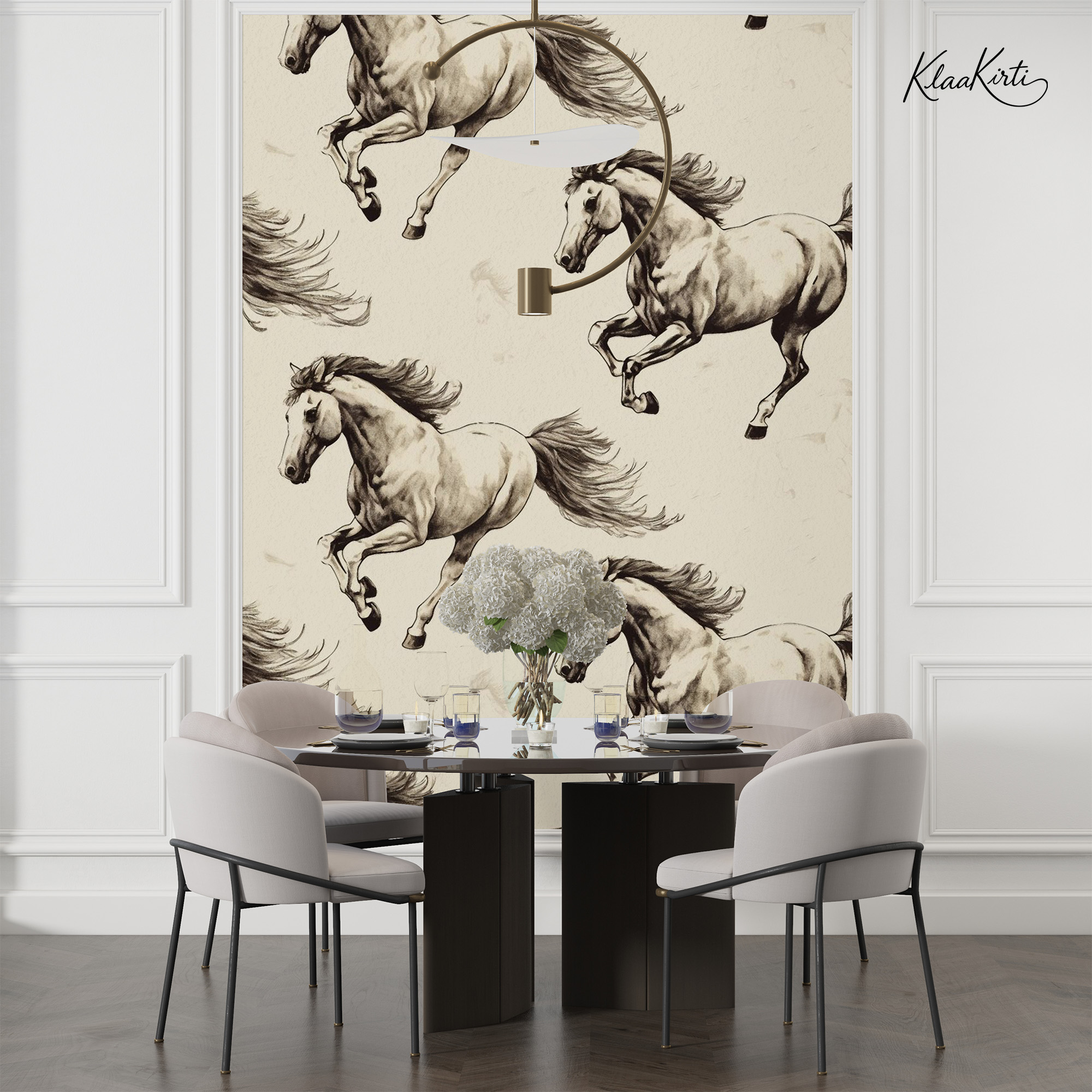 Galloping Stallions Vintage Sketch Premium Wallpaper