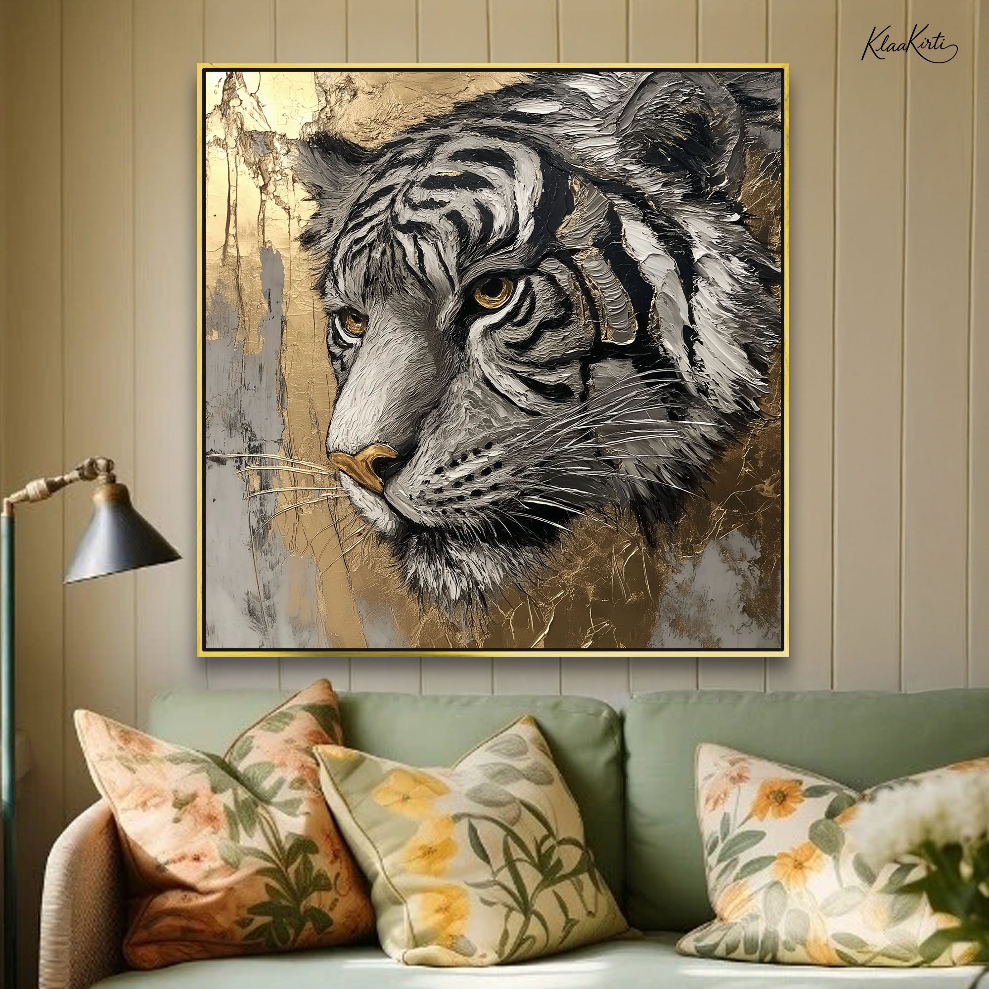 Gold-Accented Regal Tiger Canvas Wall Art for Modern Interiors.