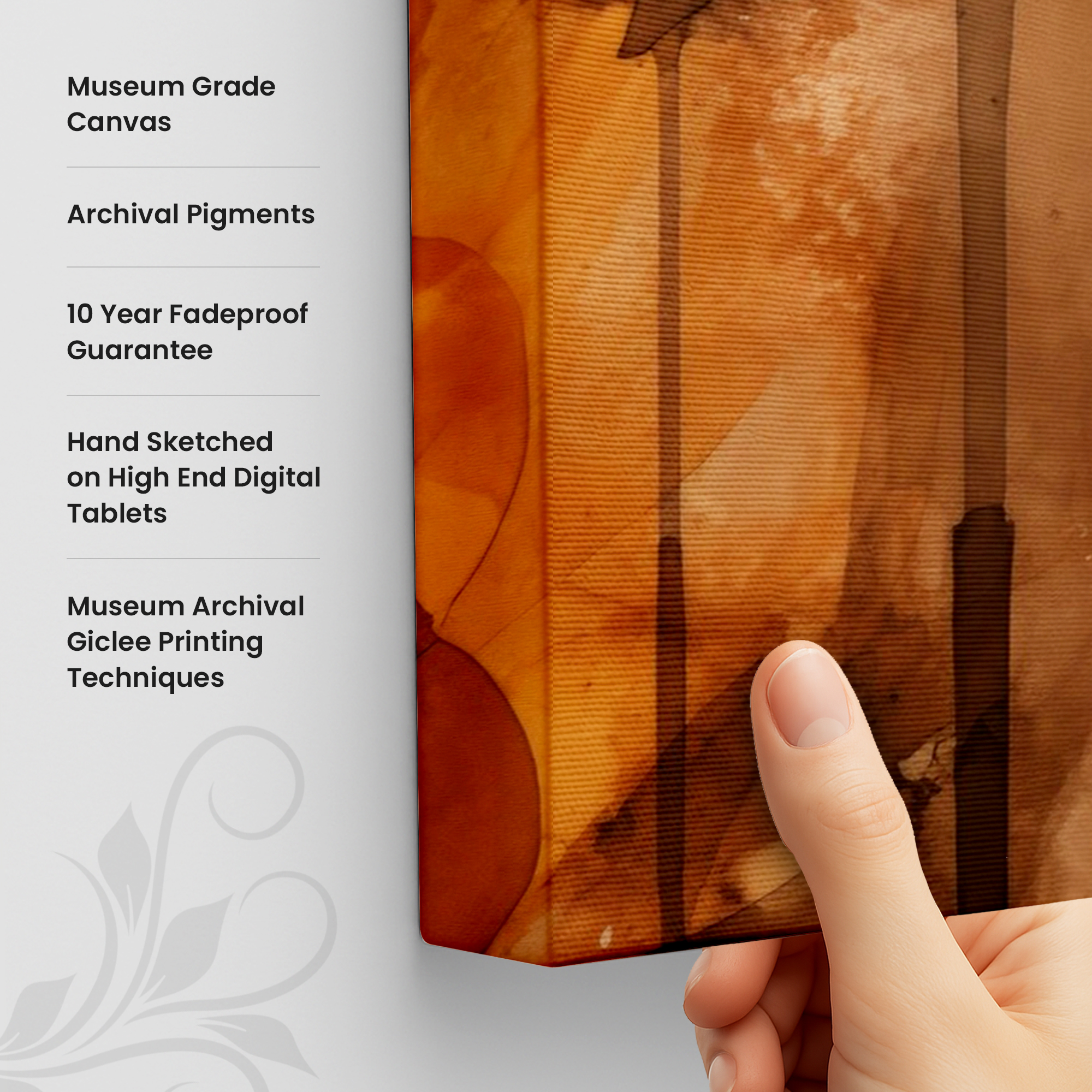 Our prints are produced on durable, gallery-grade canvases using fade-resistant inks, guaranteeing rich colors and long-lasting vibrancy that stays beautiful for years to come.