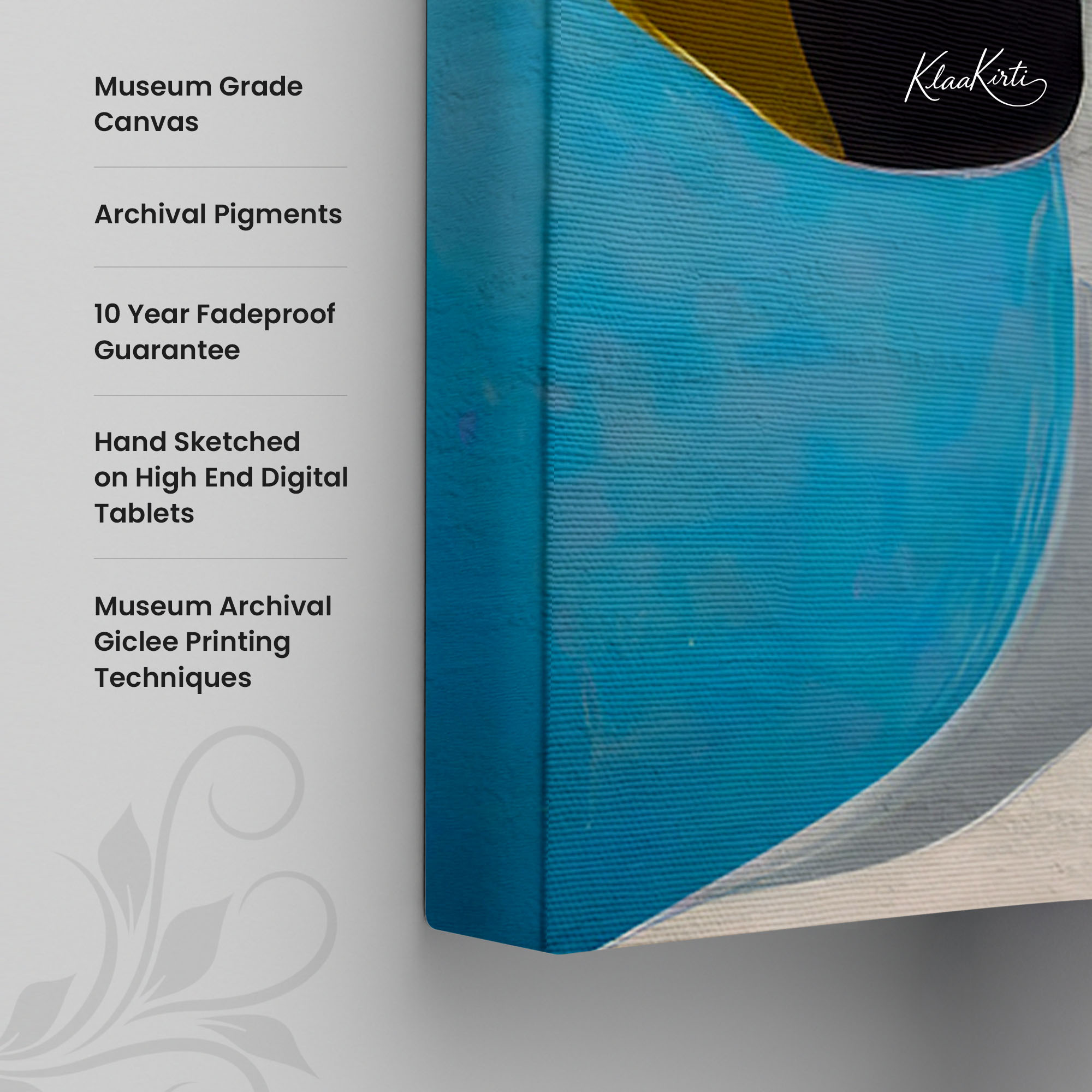 • Regular art prints can vary in quality depending on the materials and printing techniques used. At Klaakirti, our digital canvas prints are created using advanced printing technology and fade-resistant inks on premium, gallery-grade canvas. This ensures sharp detail, rich color, and long-lasting durability — giving you a piece that looks and feels truly premium.
