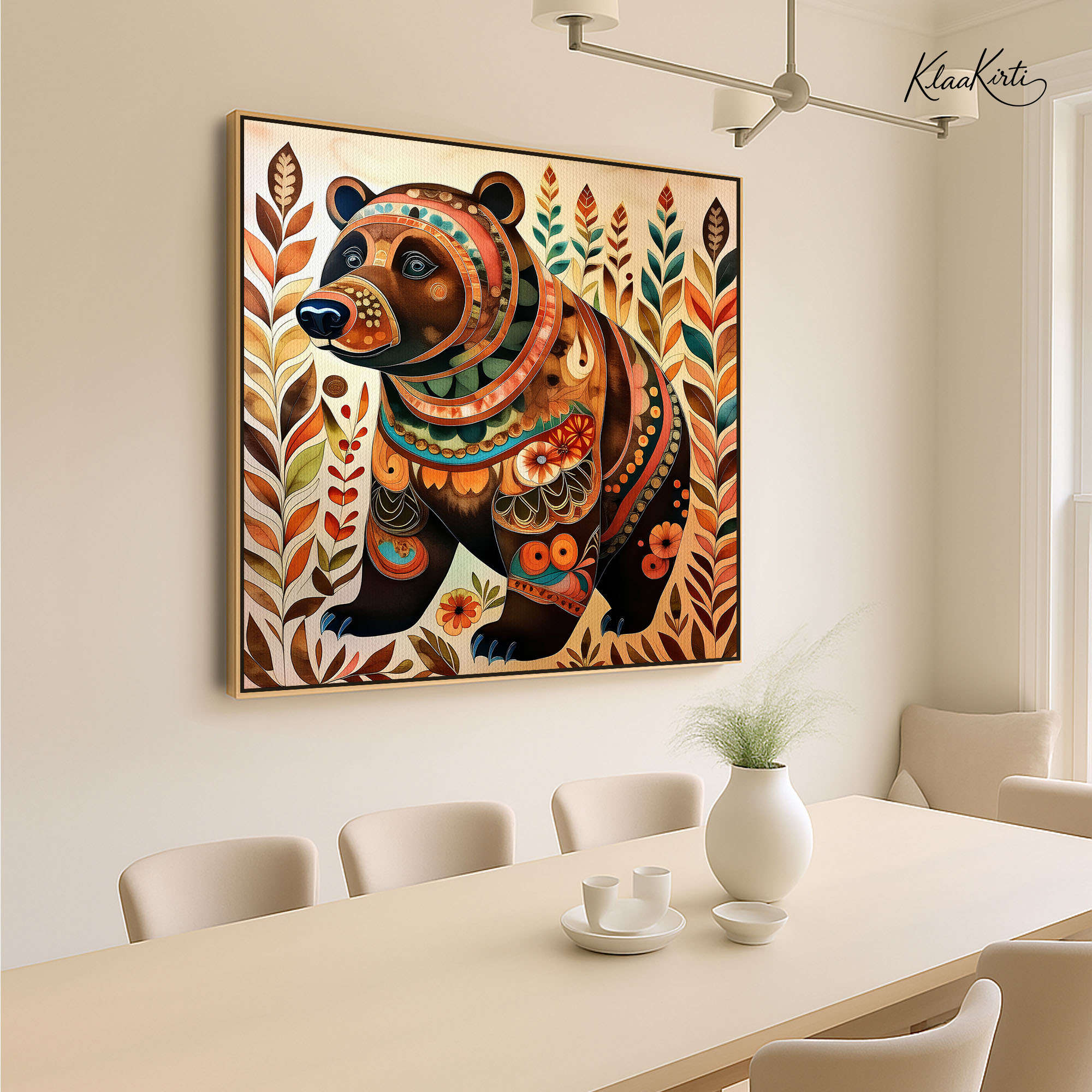 Mandala Forest Bear Canvas Wall Art for Modern Interiors.