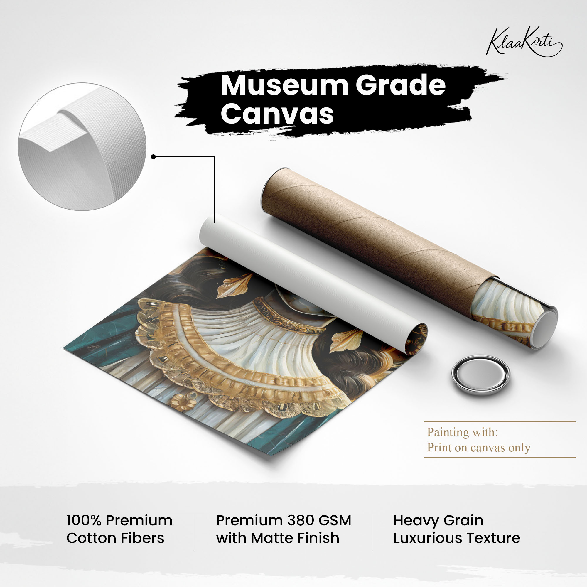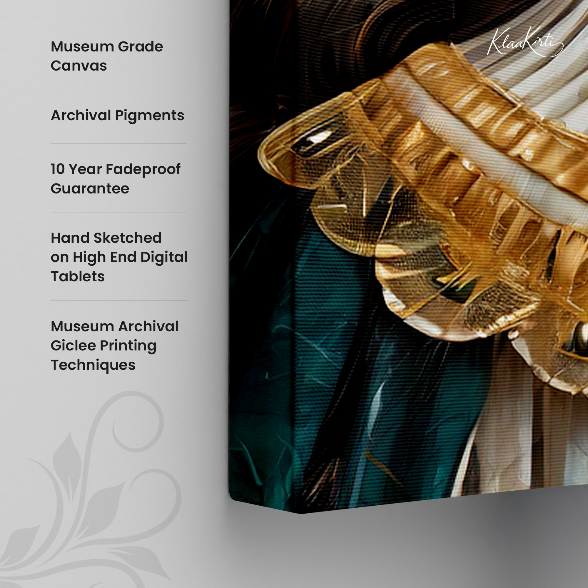 - Regular art prints can vary in quality depending on the materials and printing techniques used. At Klaakirti, our digital canvas prints are created using advanced printing technology and fade-resistant inks on premium, gallery-grade canvas. This ensures sharp detail, rich color, and long-lasting durability — giving you a piece that looks and feels truly premium.
