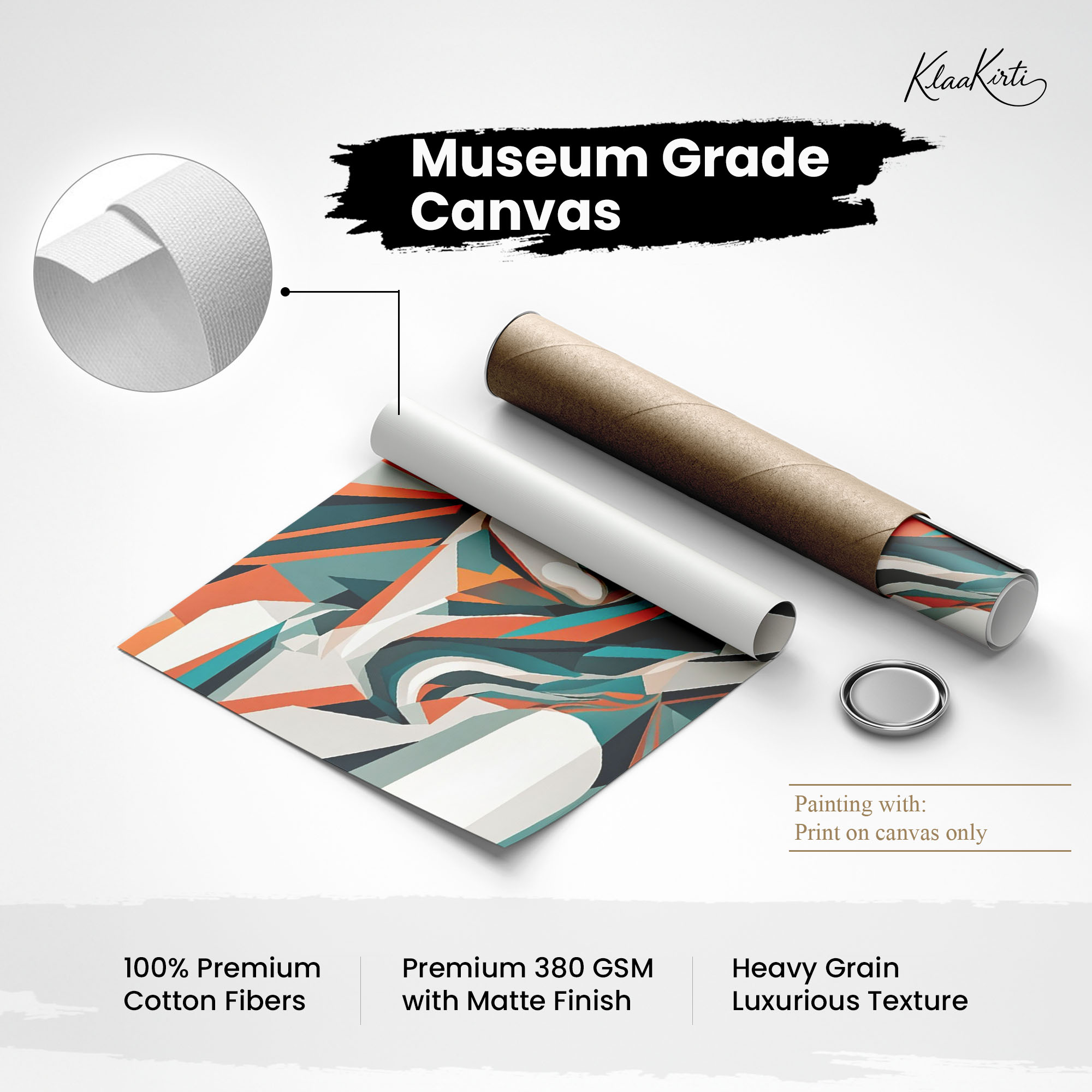 • Regular art prints can vary in quality depending on the materials and printing techniques used. At Klaakirti, our digital canvas prints are created using advanced printing technology and fade-resistant inks on premium, gallery-grade canvas. This ensures sharp detail, rich color, and long-lasting durability — giving you a piece that looks and feels truly premium.