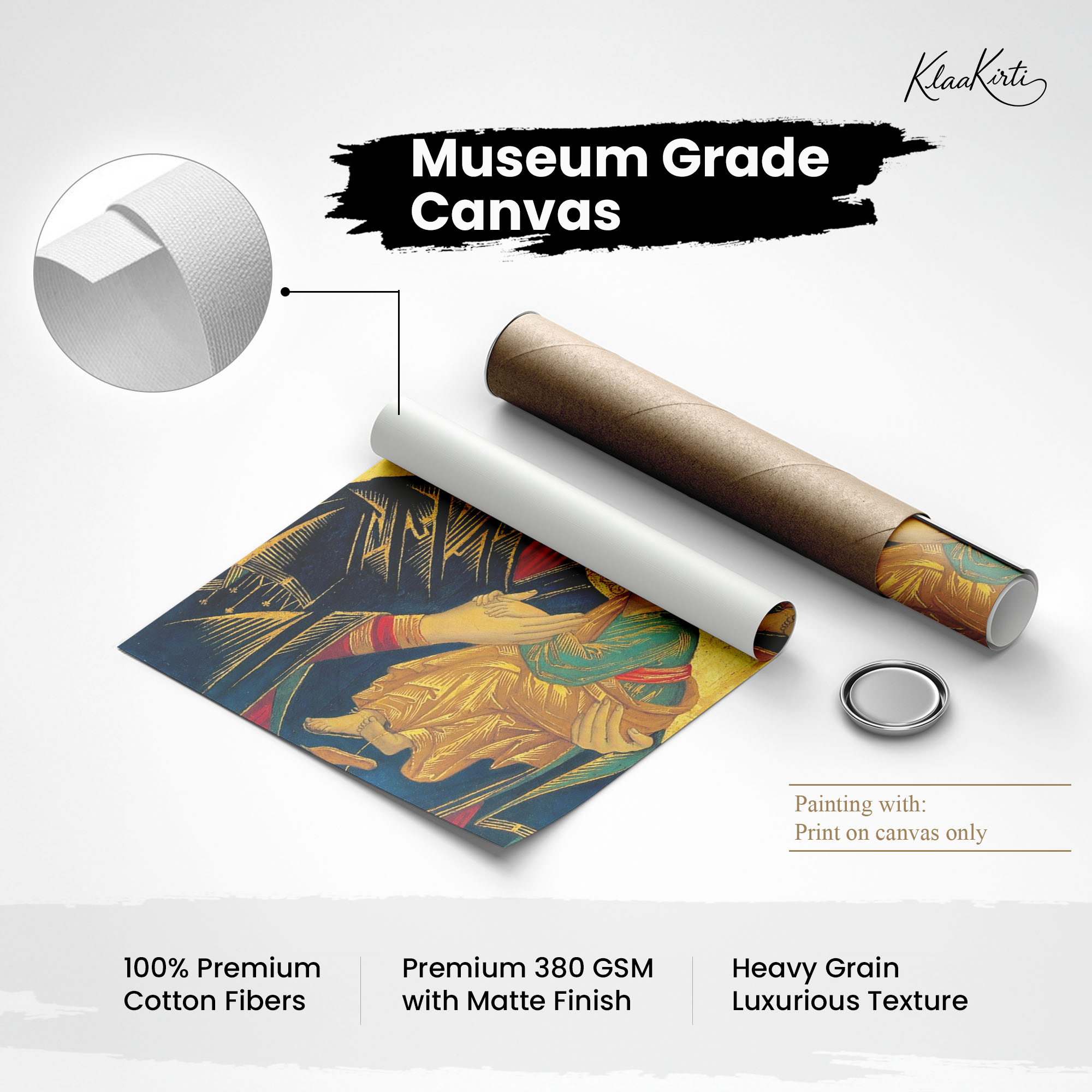 - Regular art prints can vary in quality depending on the materials and printing techniques used. At Klaakirti, our digital canvas prints are created using advanced printing technology and fade-resistant inks on premium, gallery-grade canvas. This ensures sharp detail, rich color, and long-lasting durability — giving you a piece that looks and feels truly premium.