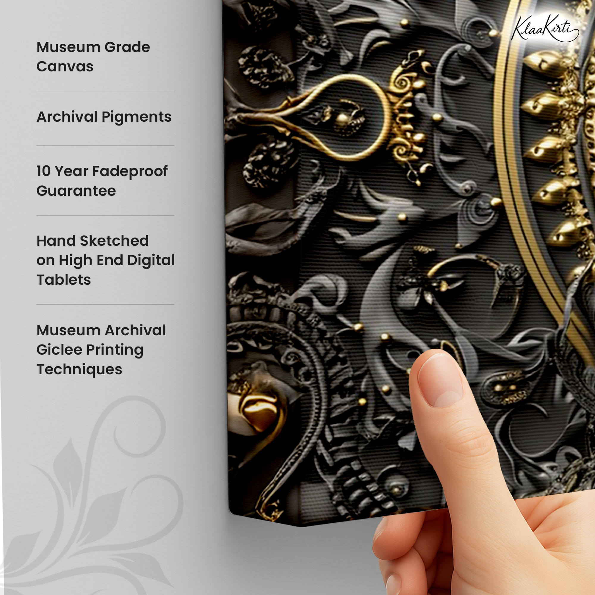 • Regular art prints can vary in quality depending on the materials and printing techniques used. At Klaakirti, our digital canvas prints are created using advanced printing technology and fade-resistant inks on premium, gallery-grade canvas. This ensures sharp detail, rich color, and long-lasting durability — giving you a piece that looks and feels truly premium.