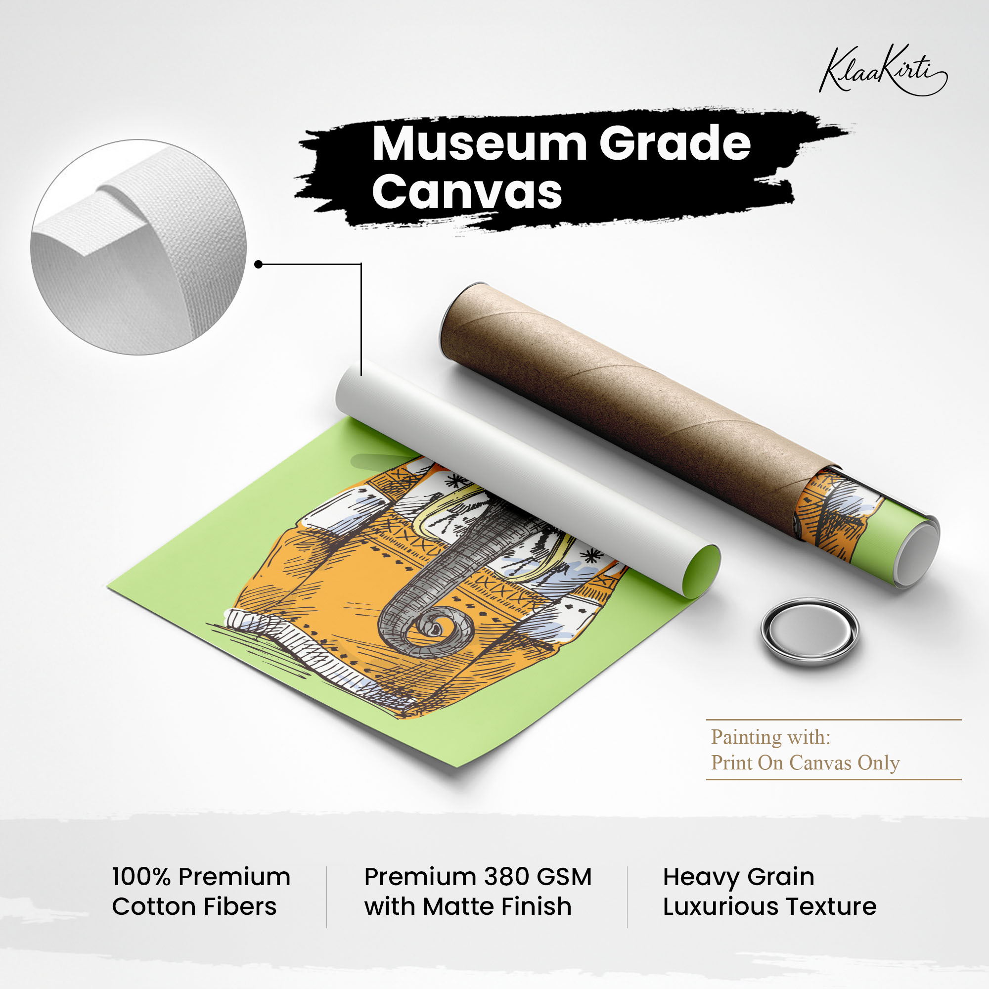 • Regular art prints can vary in quality depending on the materials and printing techniques used. At Klaakirti, our digital canvas prints are created using advanced printing technology and fade-resistant inks on premium, gallery-grade canvas. This ensures sharp detail, rich color, and long-lasting durability — giving you a piece that looks and feels truly premium.