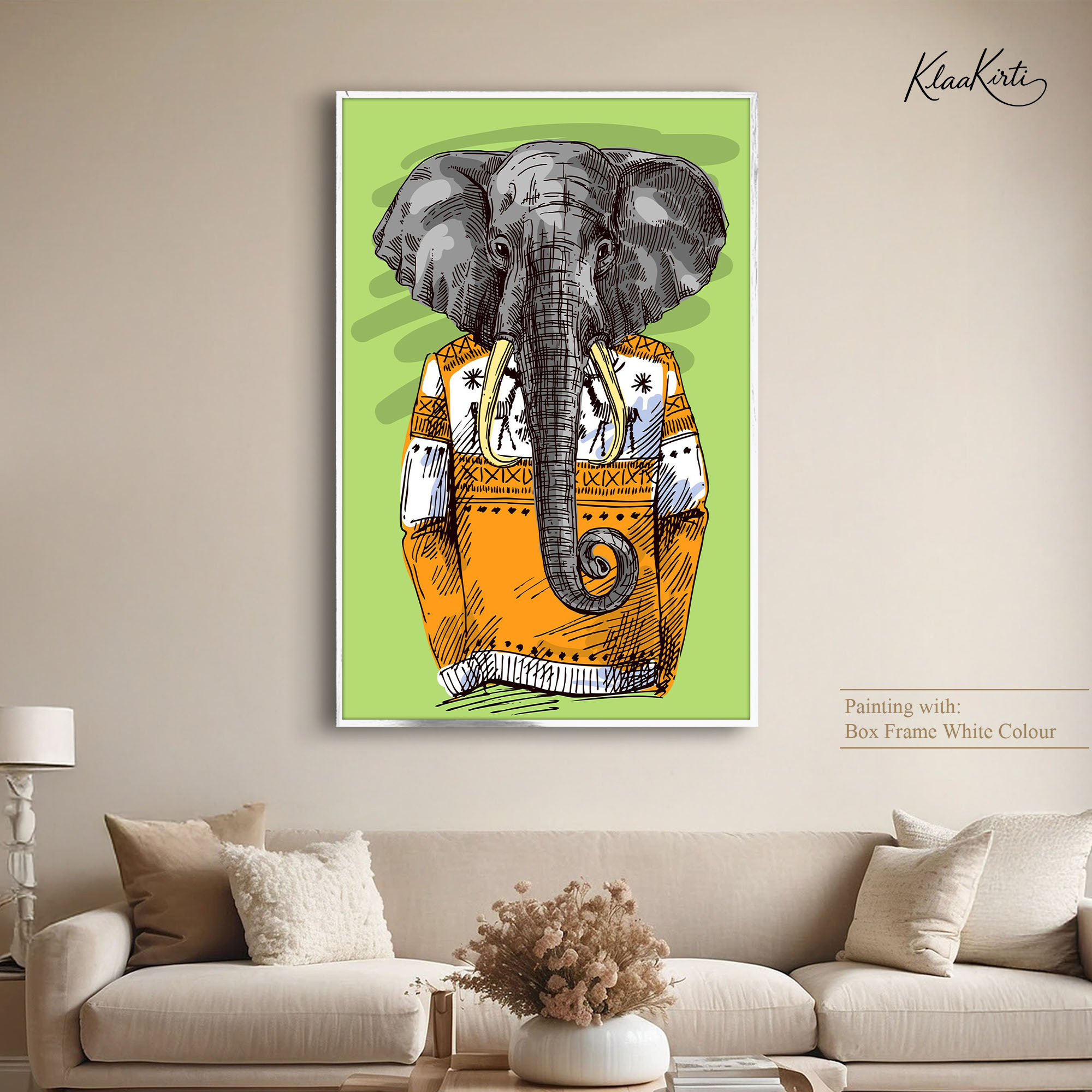 Orange Jumper Elephant Canvas Wall Art for Modern Interiors.