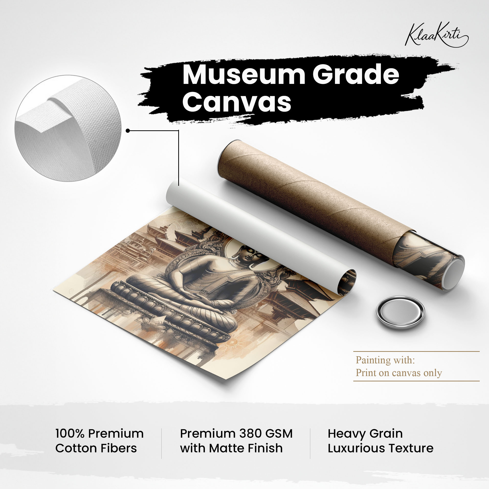 • Regular art prints can vary in quality depending on the materials and printing techniques used. At Klaakirti, our digital canvas prints are created using advanced printing technology and fade-resistant inks on premium, gallery-grade canvas. This ensures sharp detail, rich color, and long-lasting durability — giving you a piece that looks and feels truly premium.