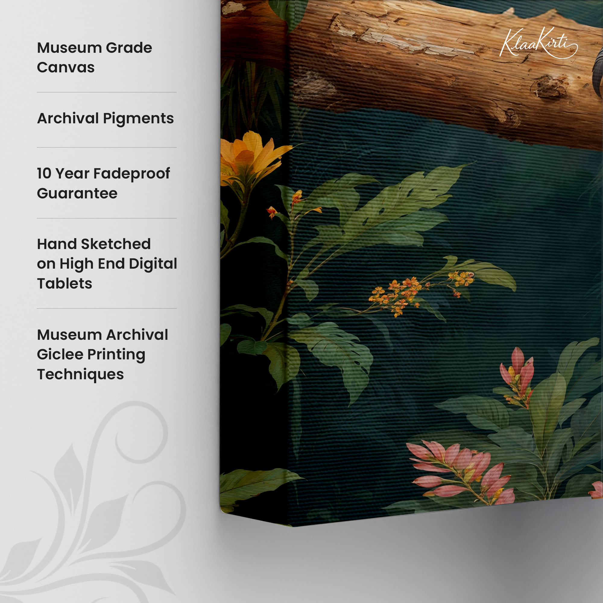 • Regular art prints can vary in quality depending on the materials and printing techniques used. At Klaakirti, our digital canvas prints are created using advanced printing technology and fade-resistant inks on premium, gallery-grade canvas. This ensures sharp detail, rich color, and long-lasting durability — giving you a piece that looks and feels truly premium.