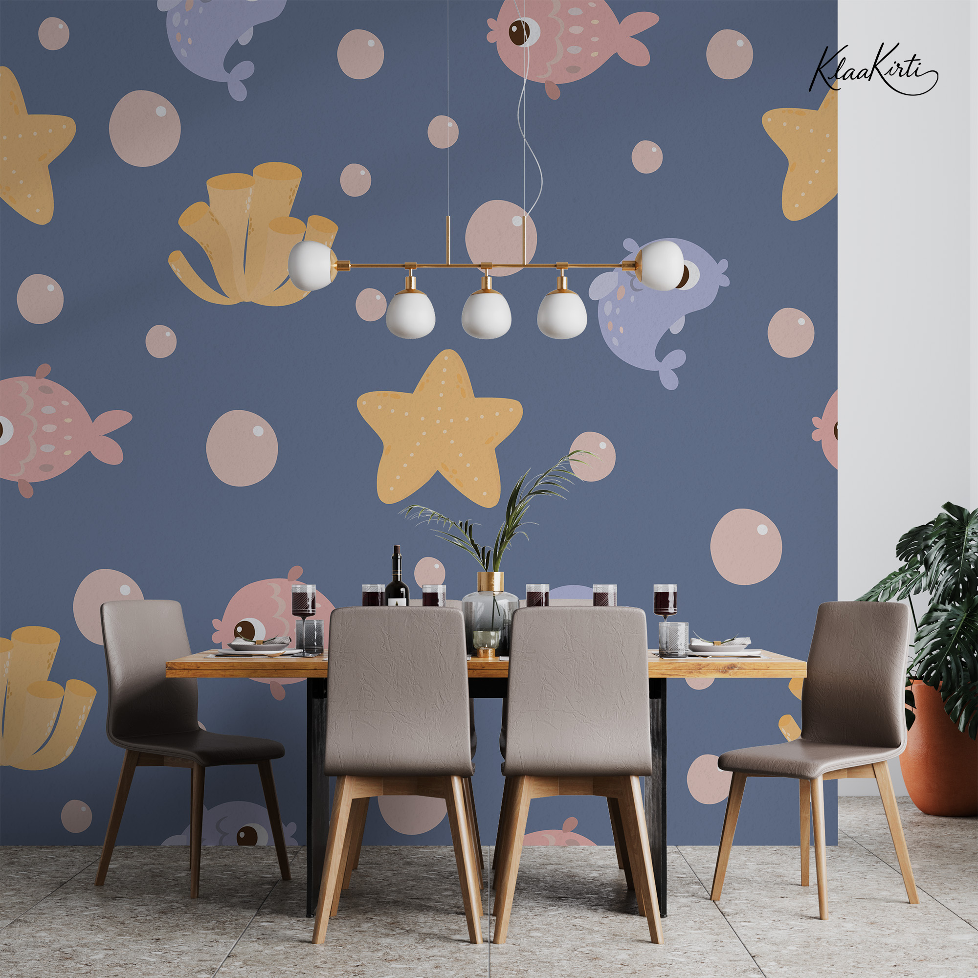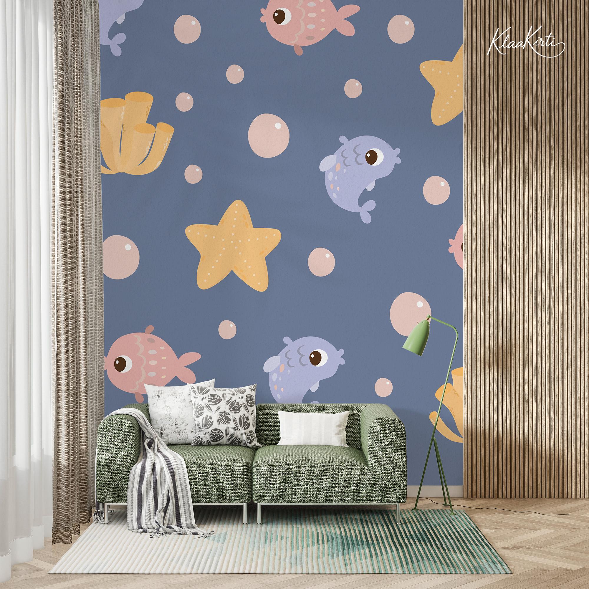 Elevate Your Walls with Pastel Underwater Sea Life Kids Premium Wallpaper