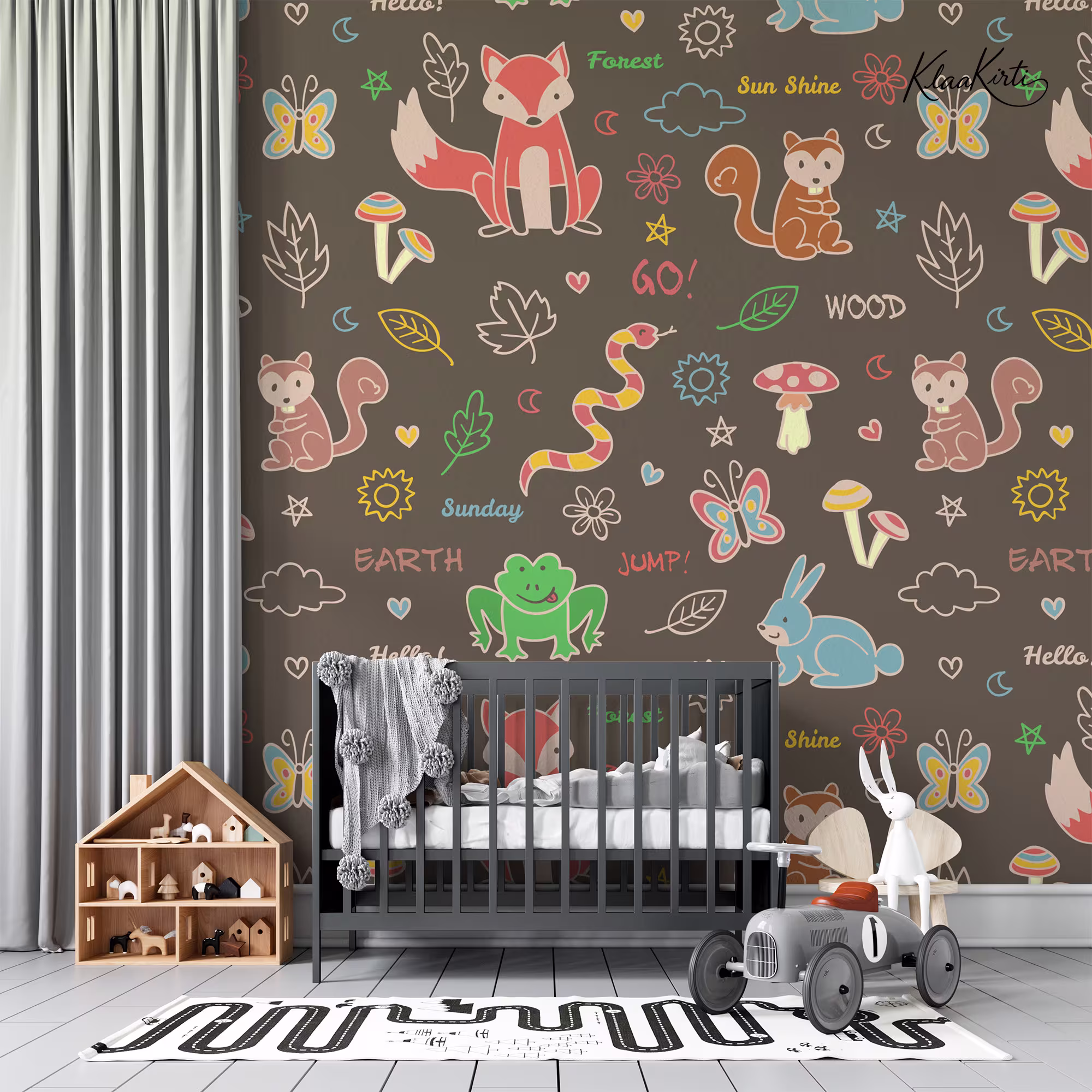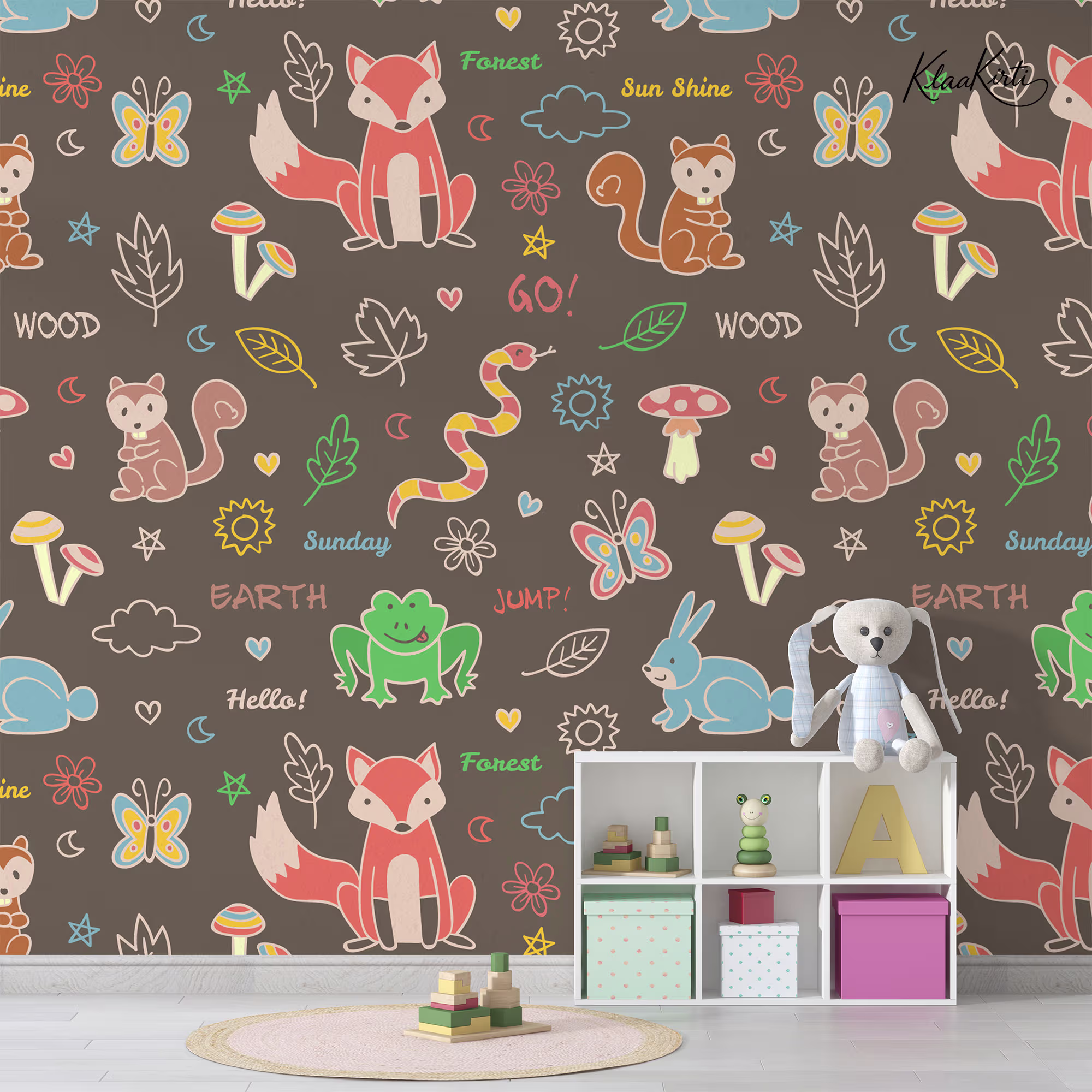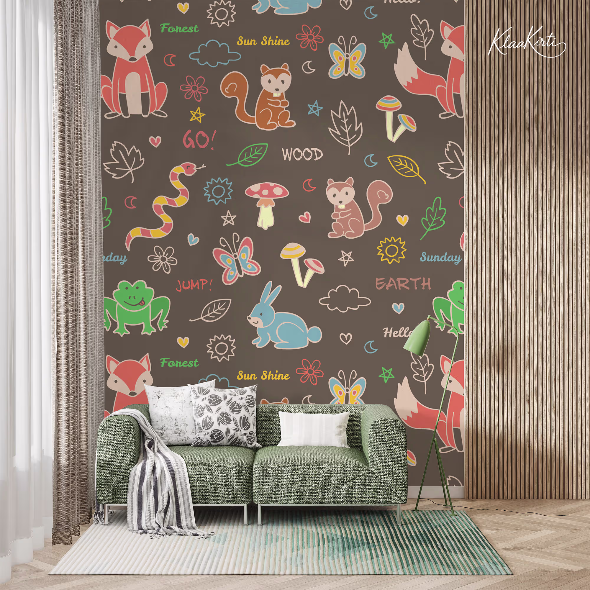 Happy Animals Woodland Doodle Kids Premium Wallpaper Price range: ₹125.00 through ₹195.00