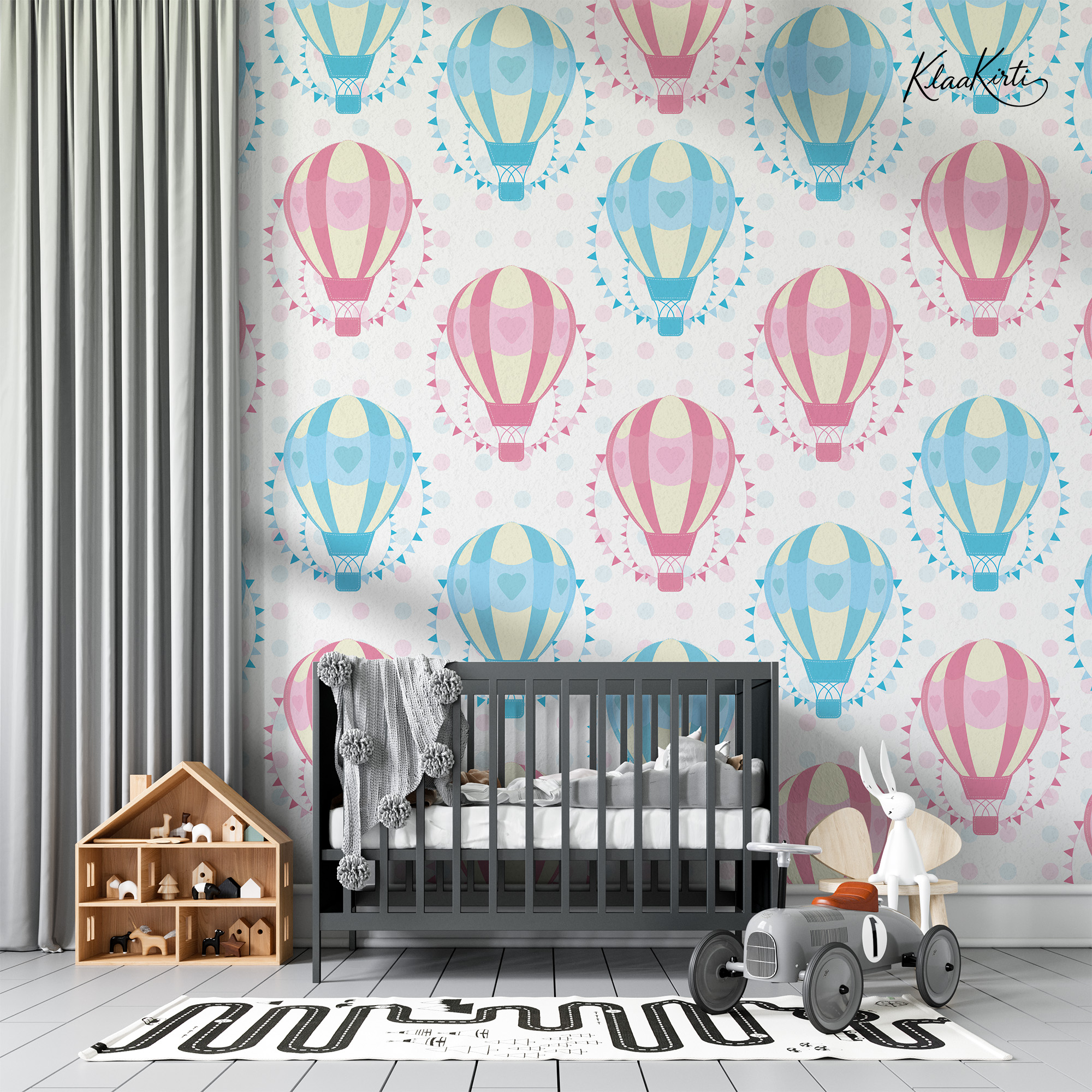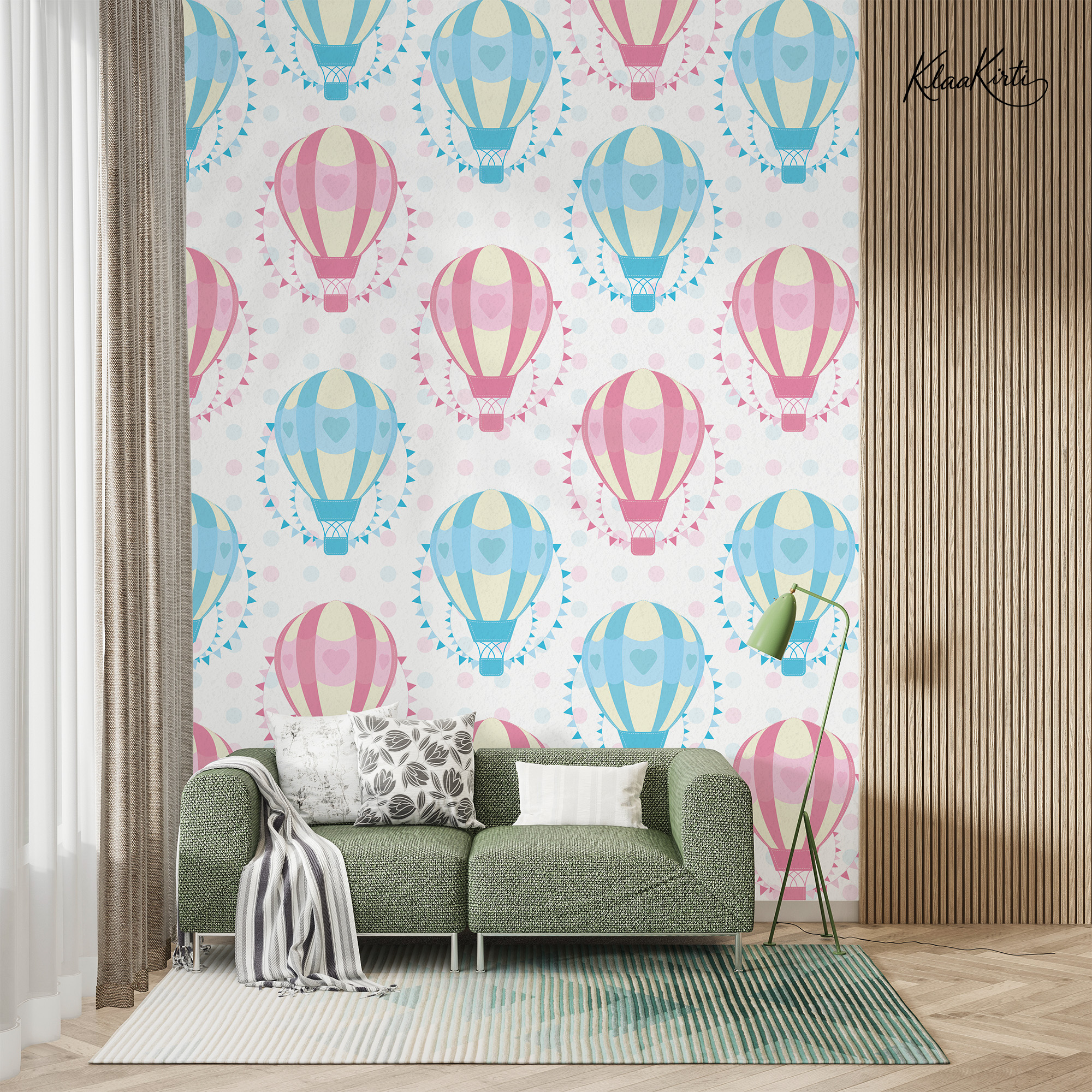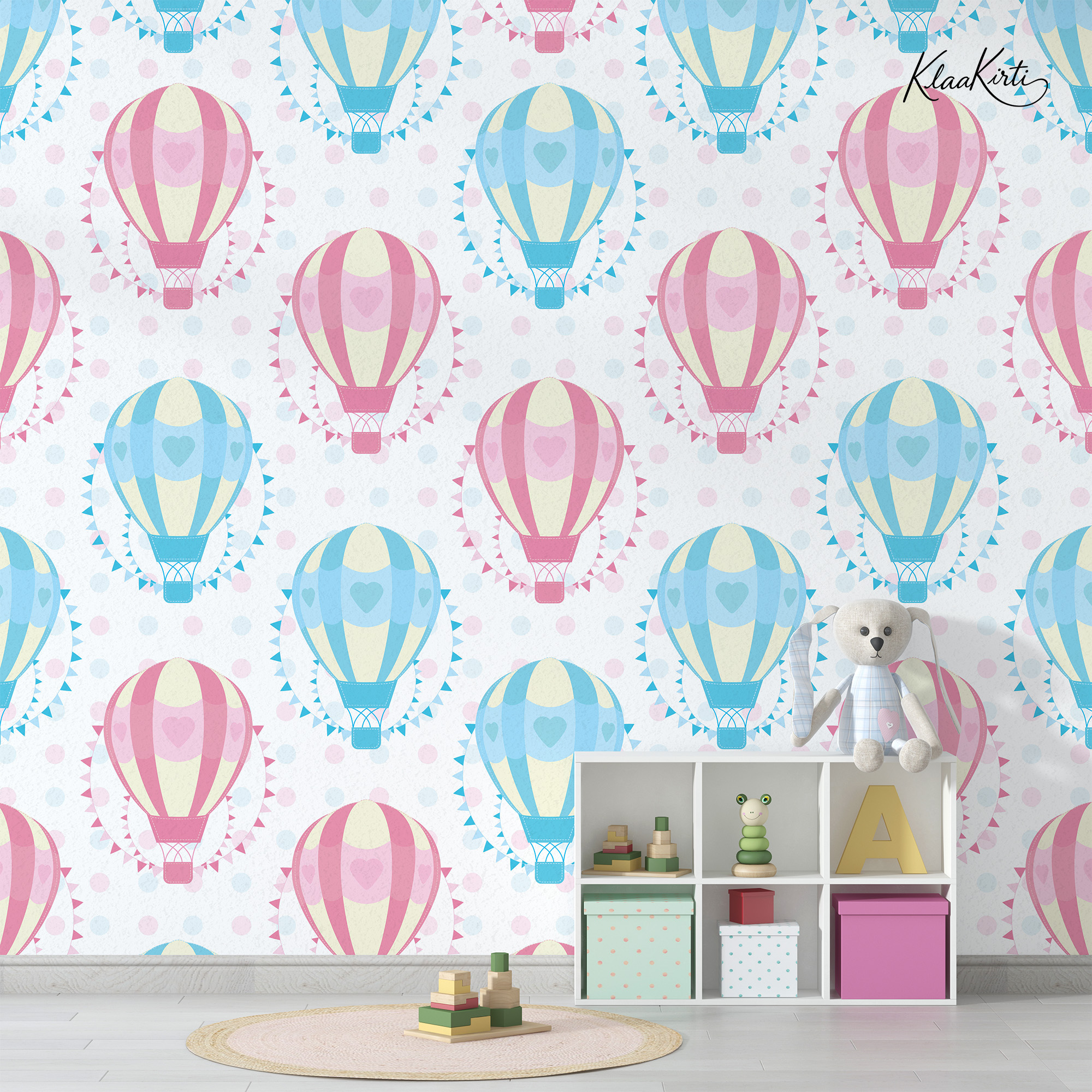Pink & Blue Hot Air Balloon Kids Premium Wallpaper