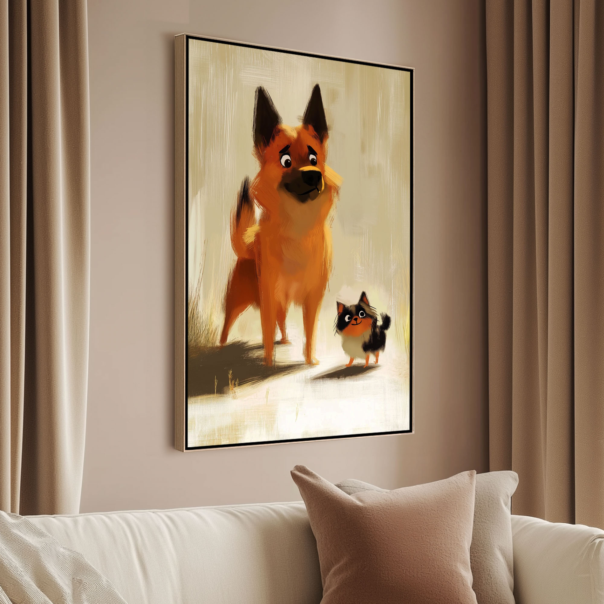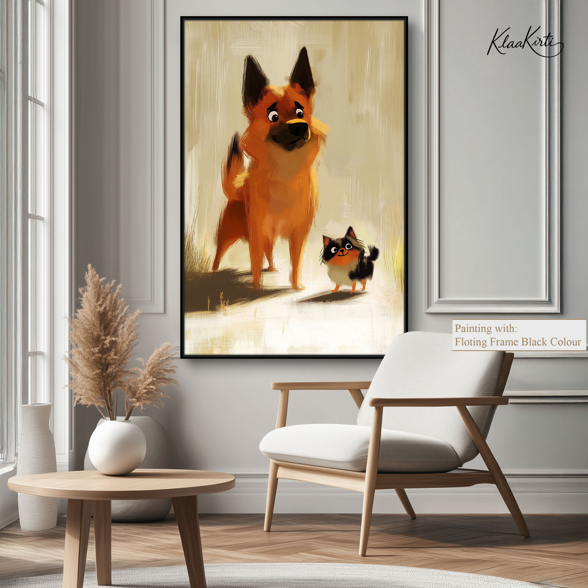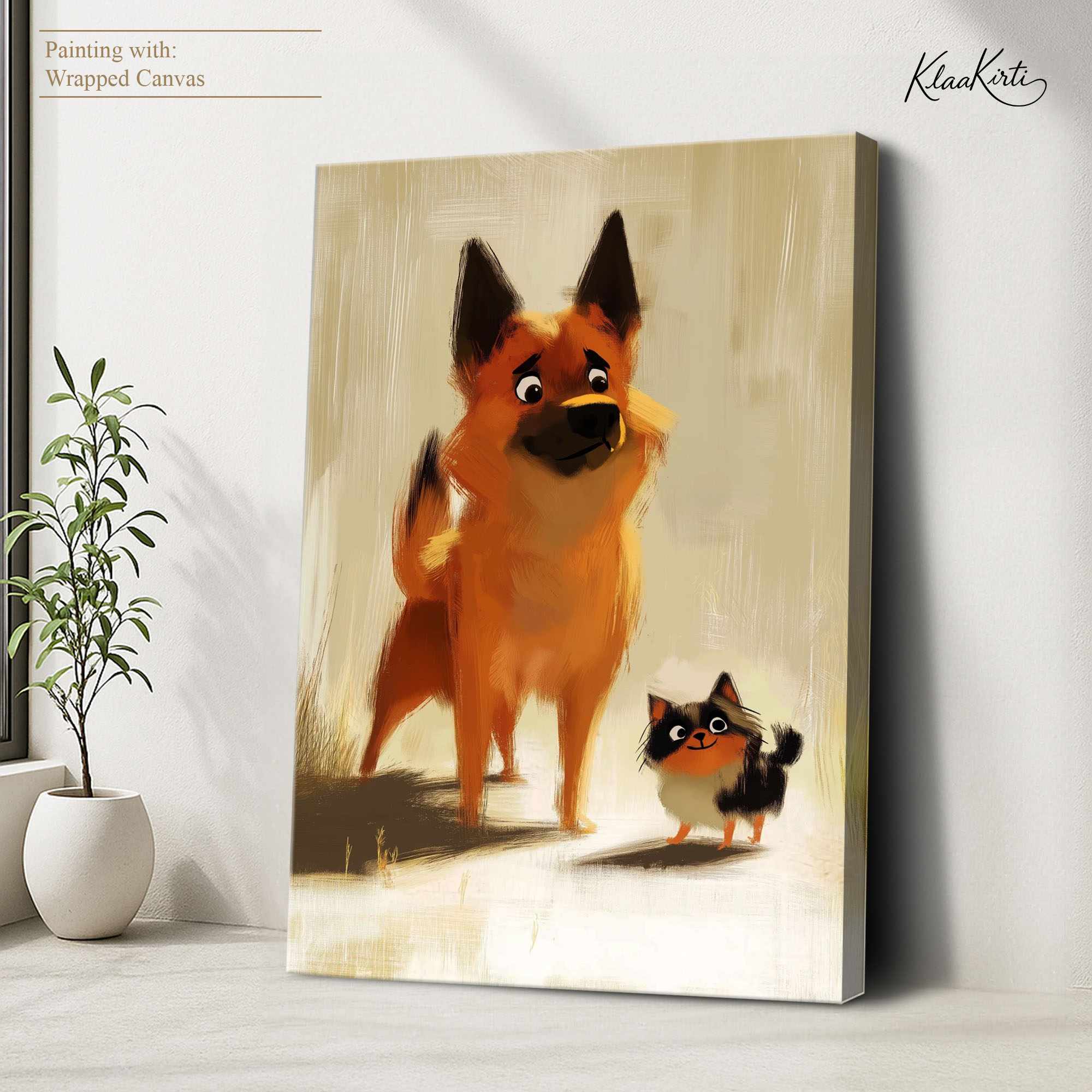Playful Dog and Cat Canvas Wall Art for Modern Interiors.