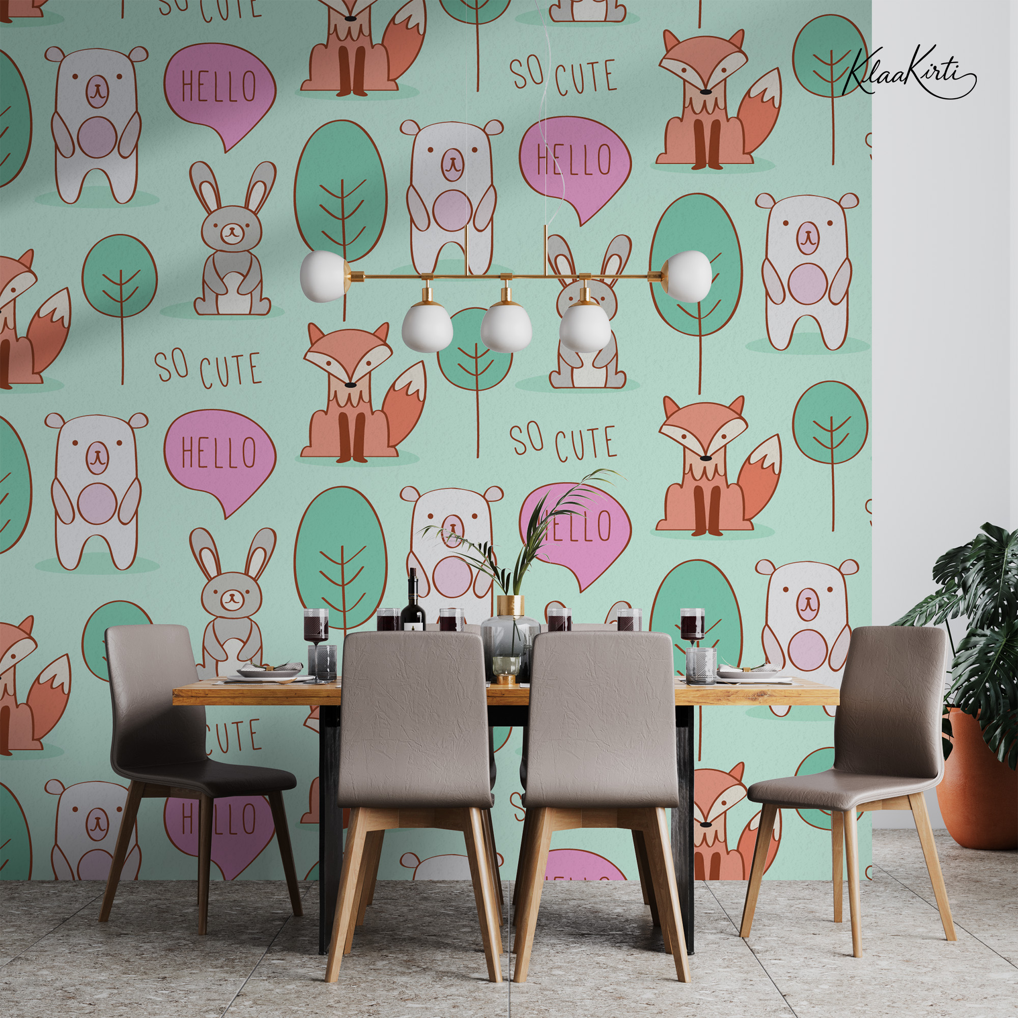 Pastel Woodland Animals and Nature Kids Premium Wallpaper Price range: ₹125.00 through ₹195.00