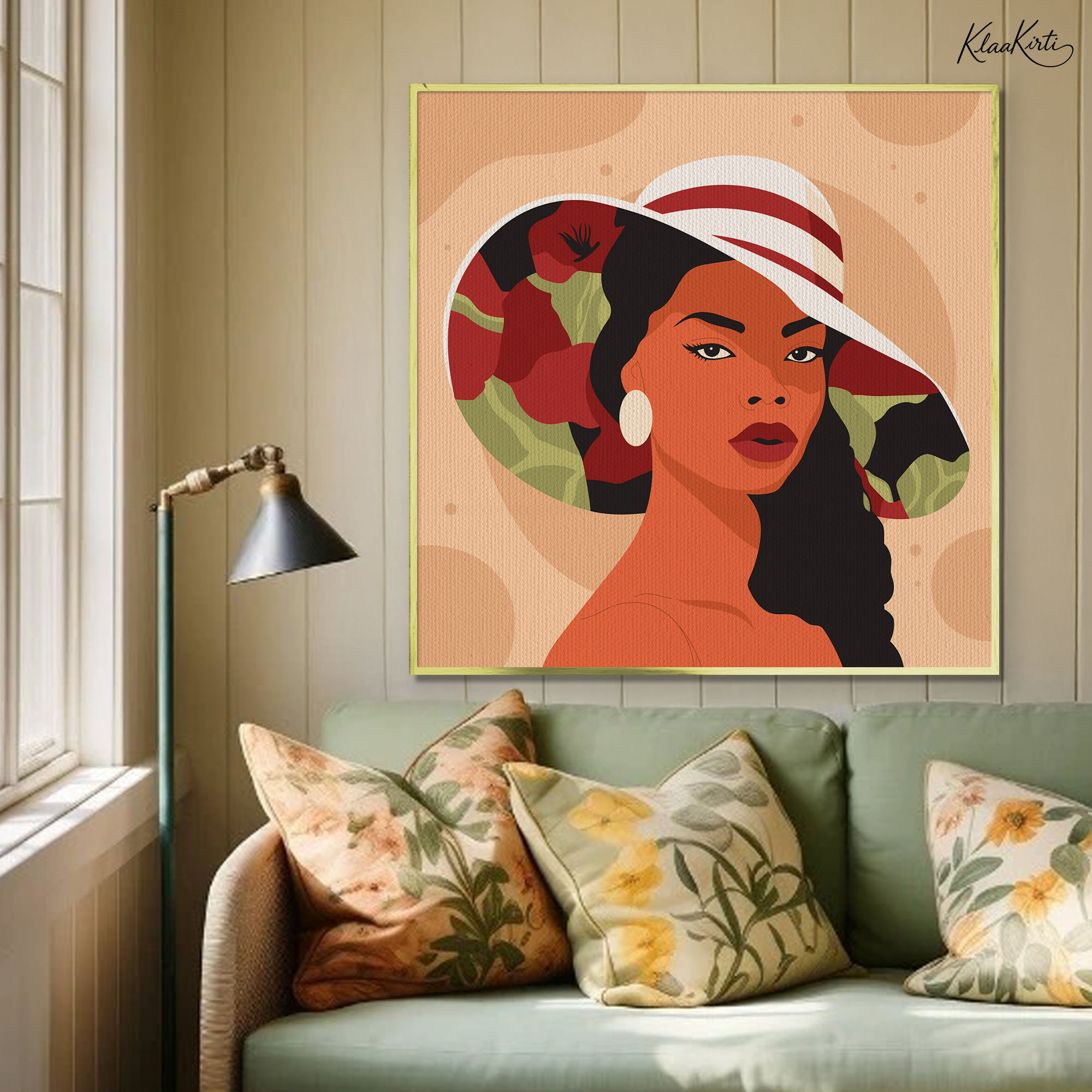 Poppy Hat Sunset Portrait Canvas Wall Art for Modern Interiors.