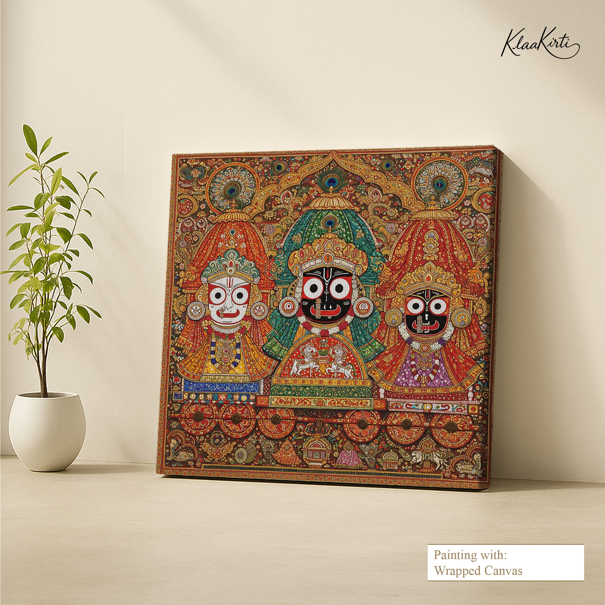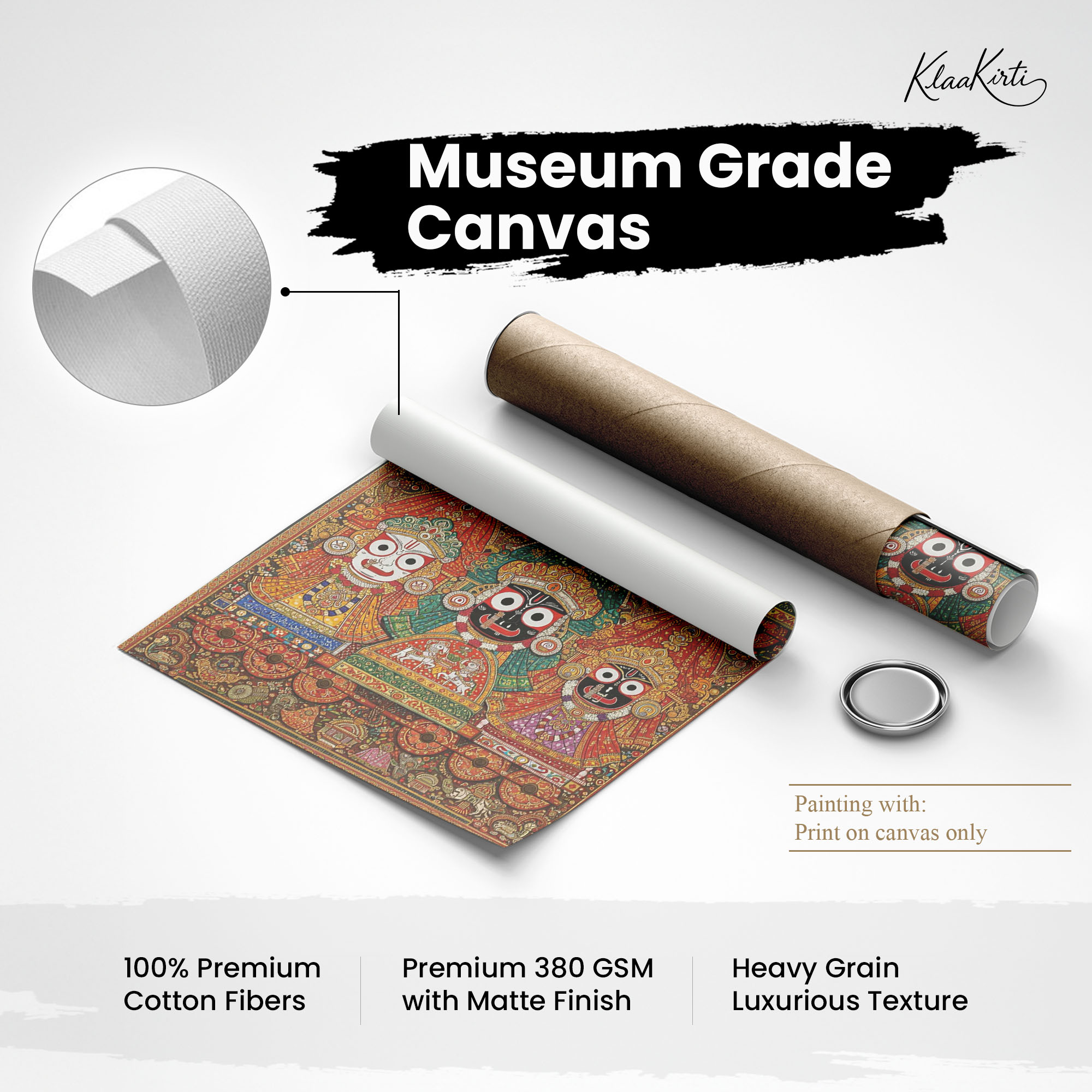 • Regular art prints can vary in quality depending on the materials and printing techniques used. At Klaakirti, our digital canvas prints are created using advanced printing technology and fade-resistant inks on premium, gallery-grade canvas. This ensures sharp detail, rich color, and long-lasting durability — giving you a piece that looks and feels truly premium.
