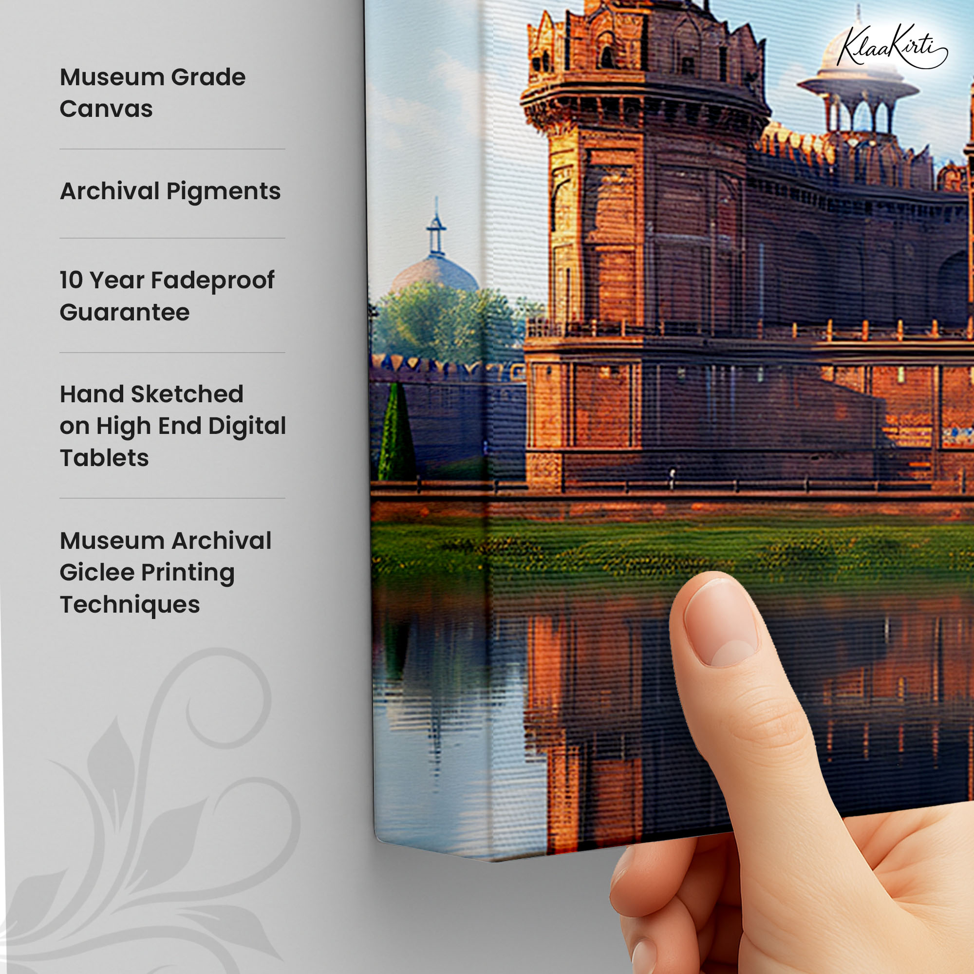• Regular art prints can vary in quality depending on the materials and printing techniques used. At Klaakirti, our digital canvas prints are created using advanced printing technology and fade-resistant inks on premium, gallery-grade canvas. This ensures sharp detail, rich color, and long-lasting durability — giving you a piece that looks and feels truly premium.