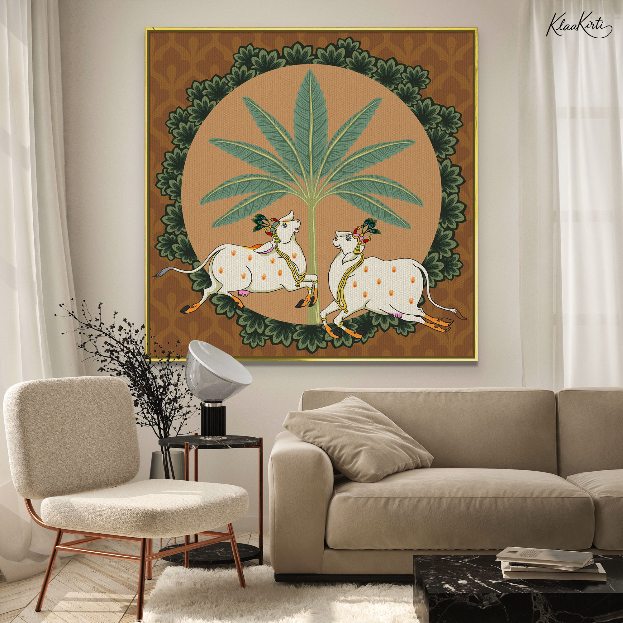 I wanted a sophisticated look for my home office. I ordered a large canvas print from Kalaakirti. The packaging was very secure (I was worried about damage during shipping), and the print quality is crystal clear. It gives a very professional yet warm touch to my workspace.