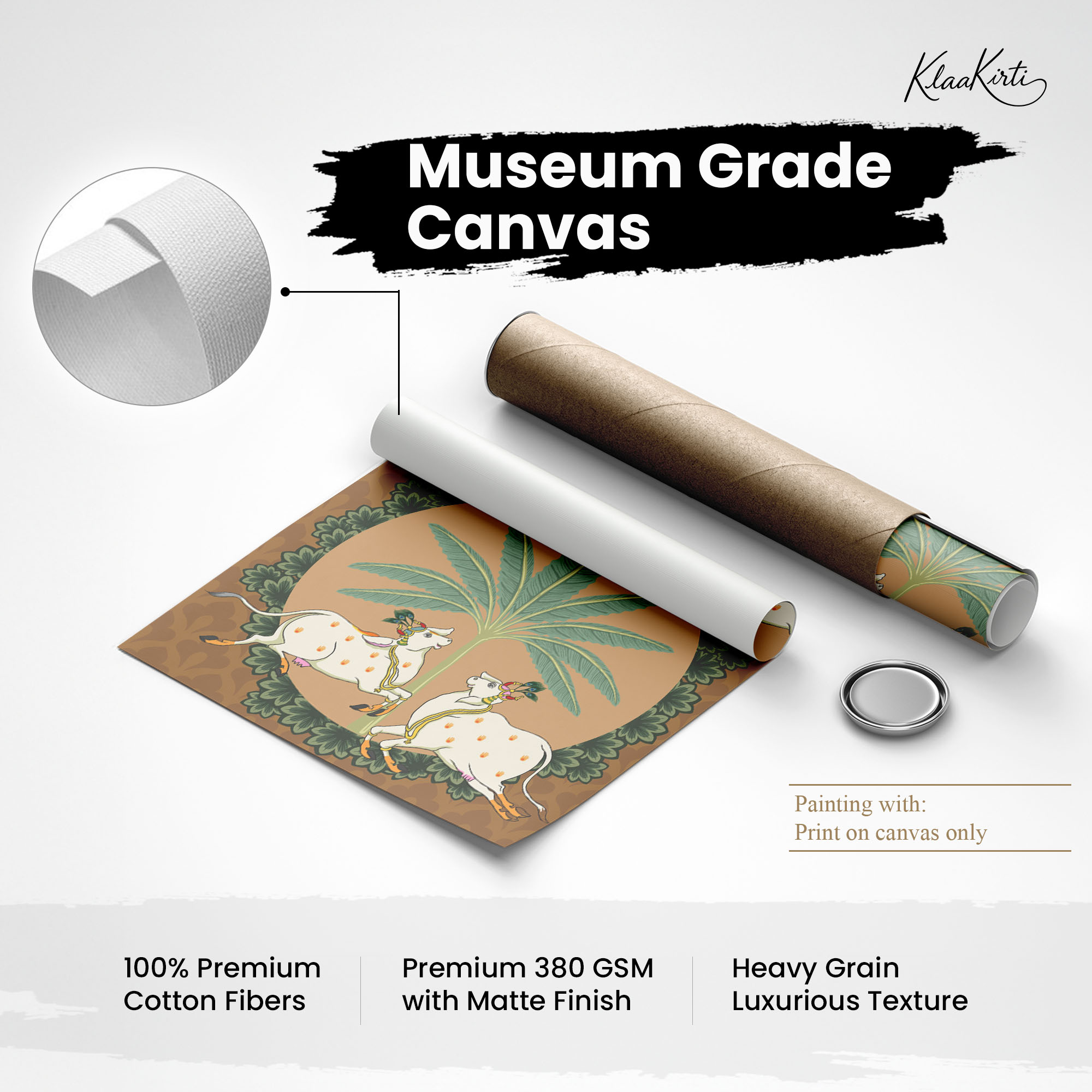 • Regular art prints can vary in quality depending on the materials and printing techniques used. At Klaakirti, our digital canvas prints are created using advanced printing technology and fade-resistant inks on premium, gallery-grade canvas. This ensures sharp detail, rich color, and long-lasting durability — giving you a piece that looks and feels truly premium.