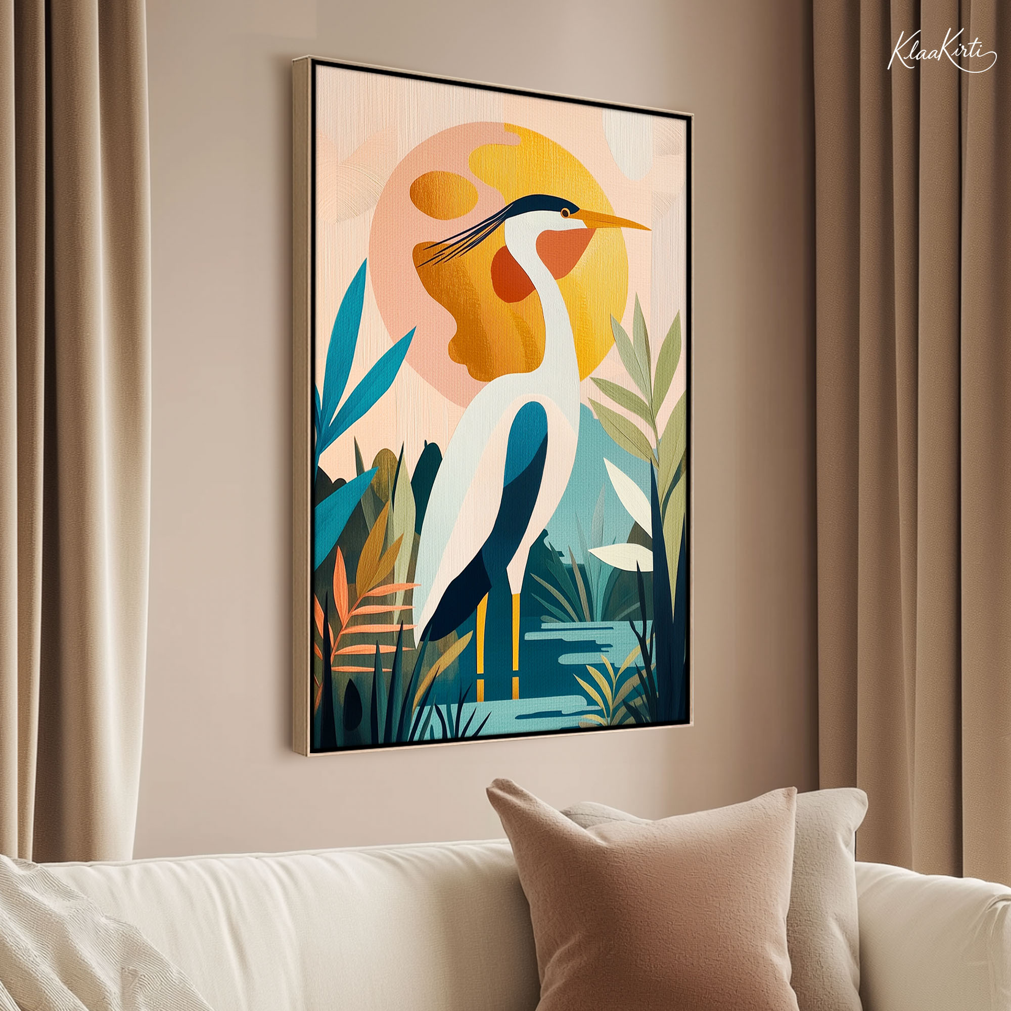 Serenity heron Canvas Wall Art for Modern Interiors.