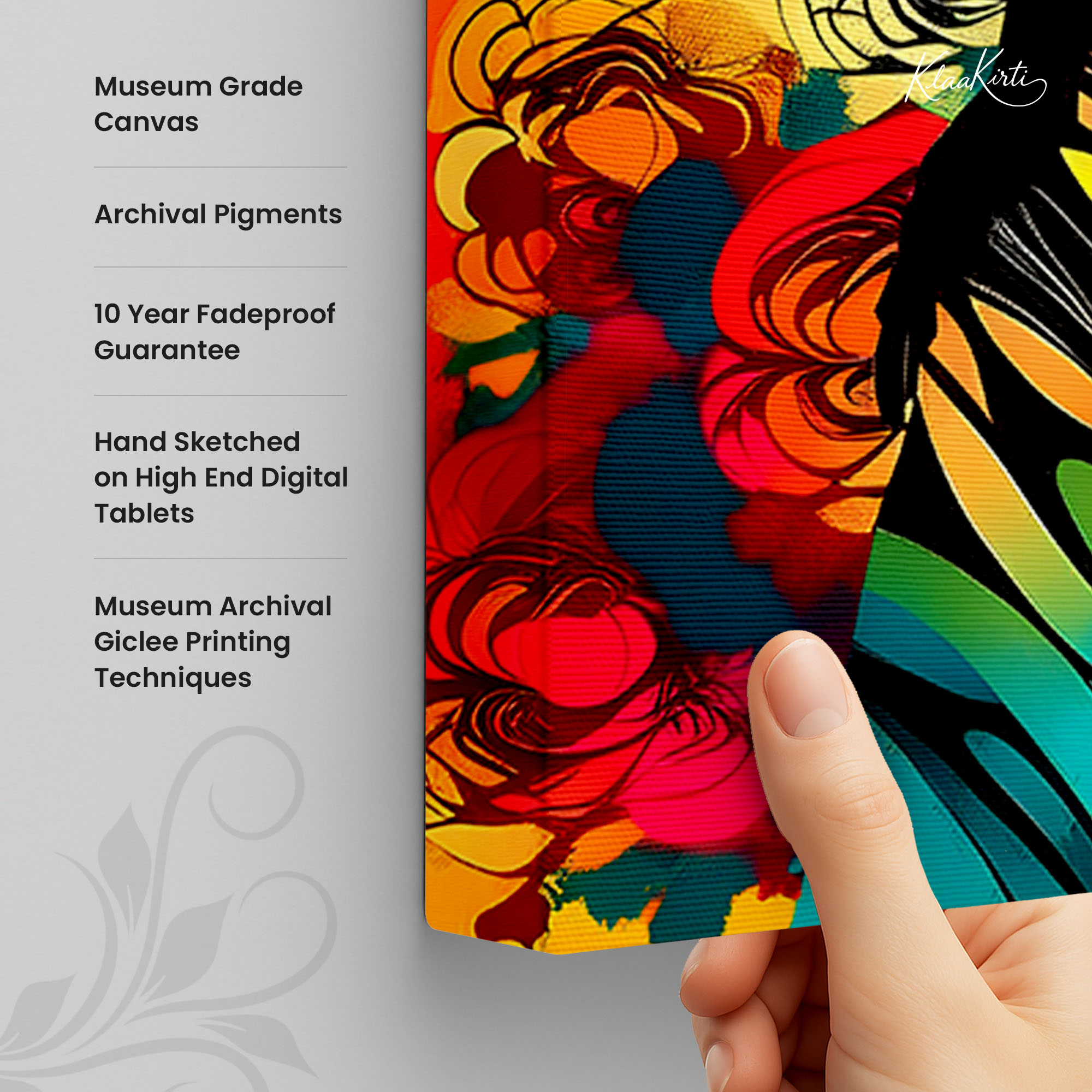 • Regular art prints can vary in quality depending on the materials and printing techniques used. At Klaakirti, our digital canvas prints are created using advanced printing technology and fade-resistant inks on premium, gallery-grade canvas. This ensures sharp detail, rich color, and long-lasting durability — giving you a piece that looks and feels truly premium.