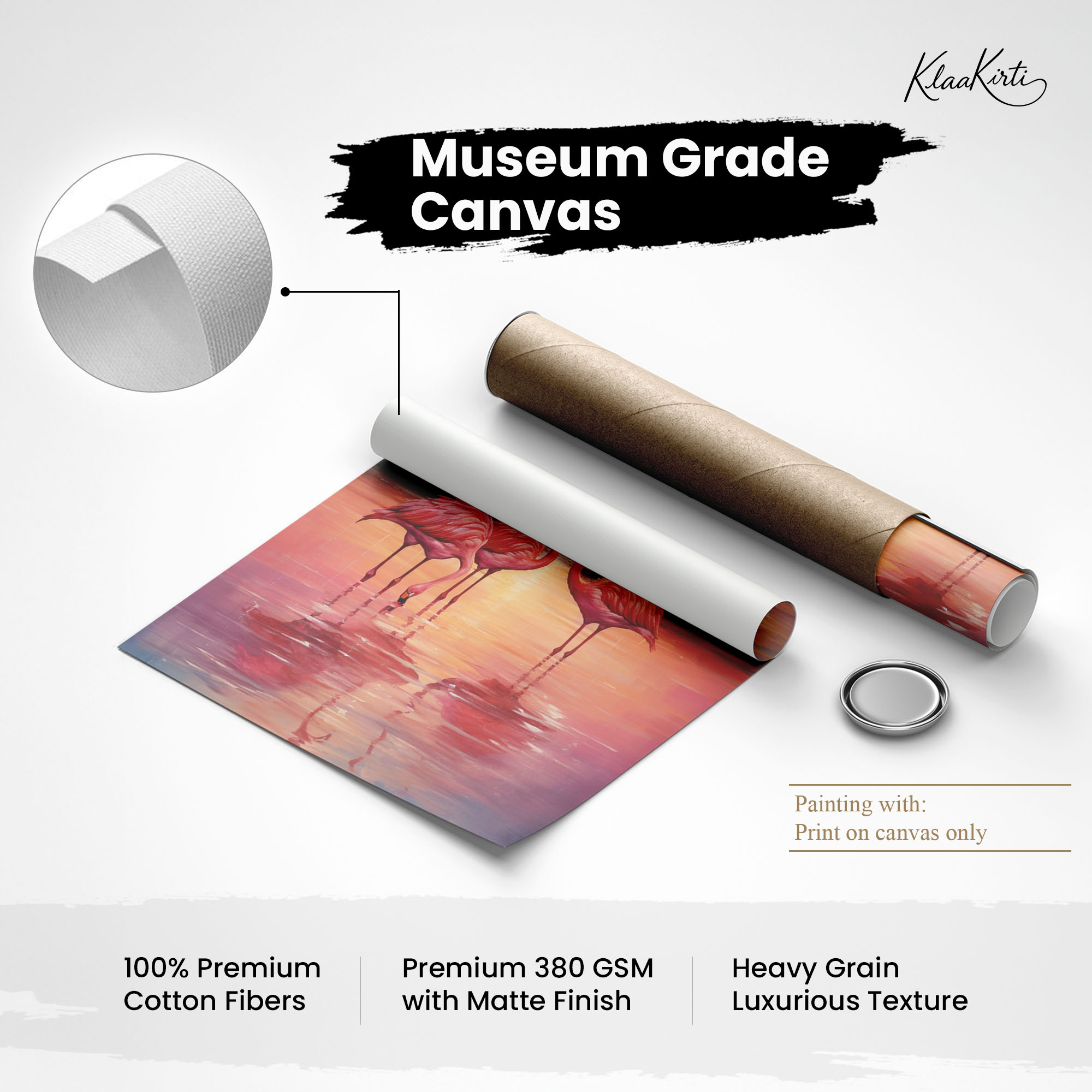 • Regular art prints can vary in quality depending on the materials and printing techniques used. At Klaakirti, our digital canvas prints are created using advanced printing technology and fade-resistant inks on premium, gallery-grade canvas. This ensures sharp detail, rich color, and long-lasting durability — giving you a piece that looks and feels truly premium.