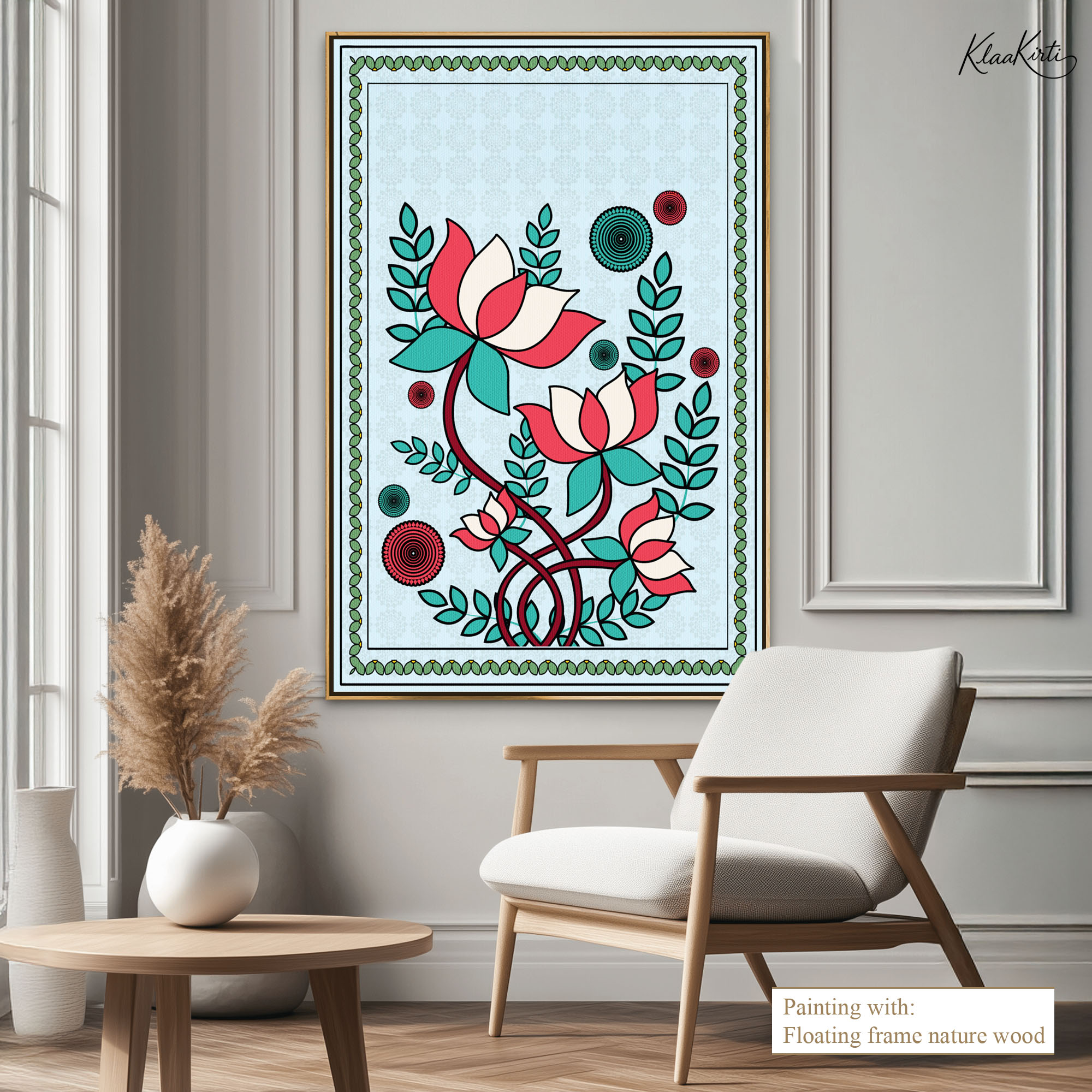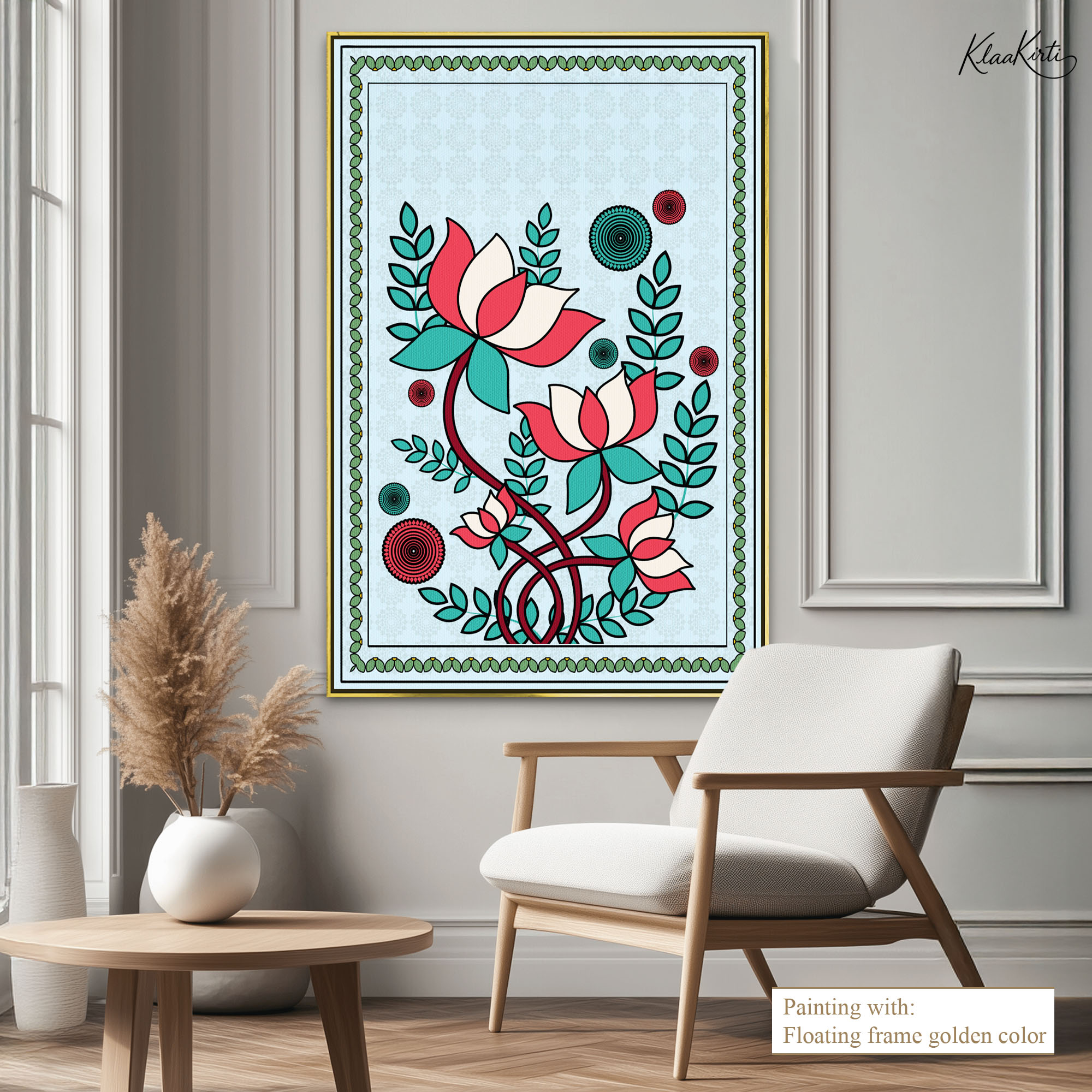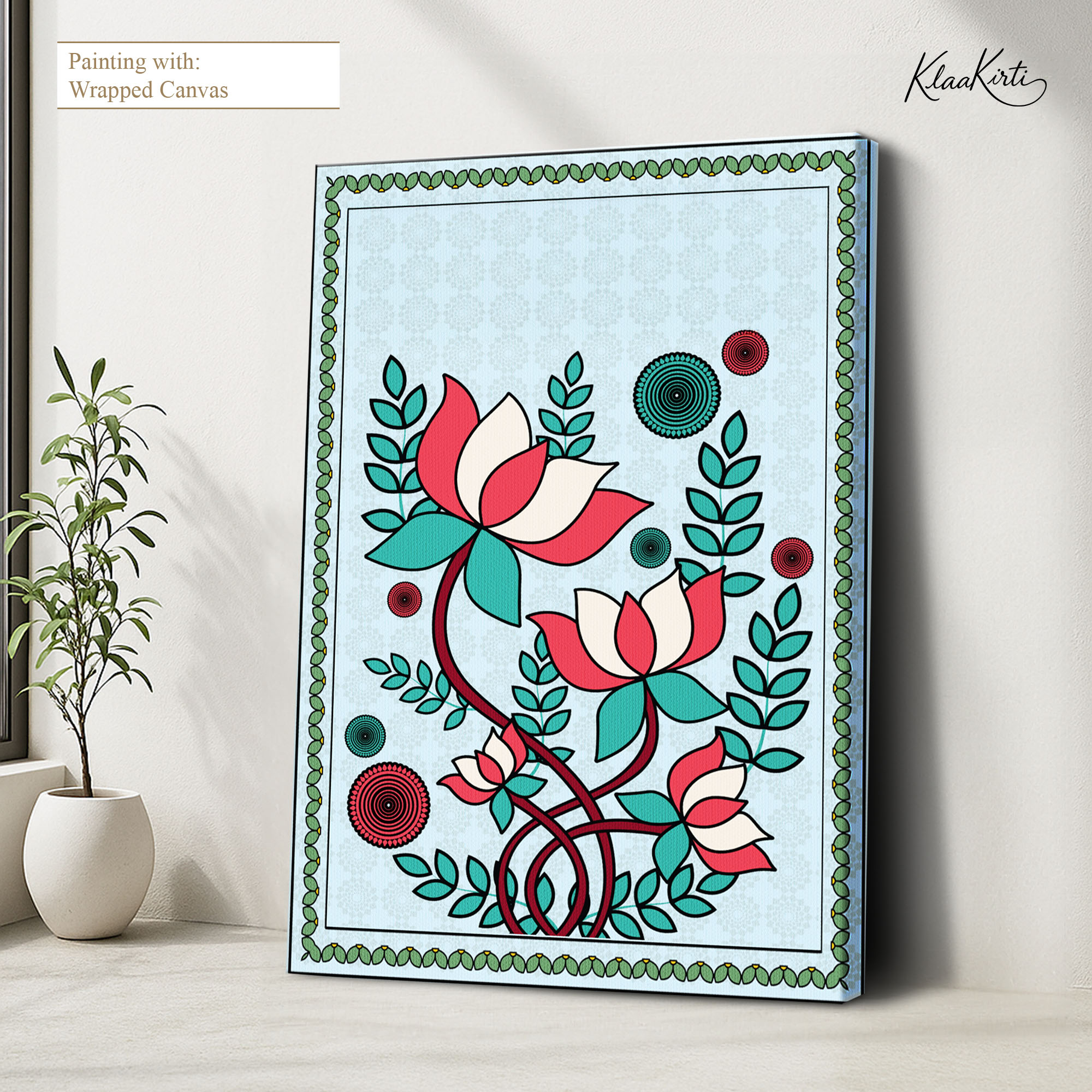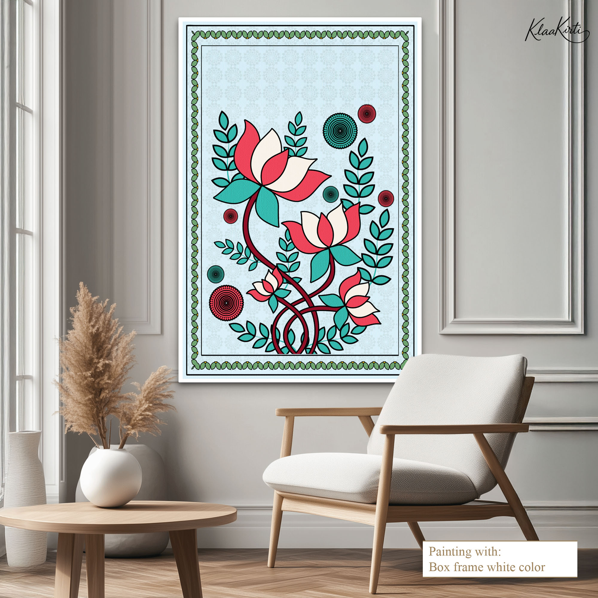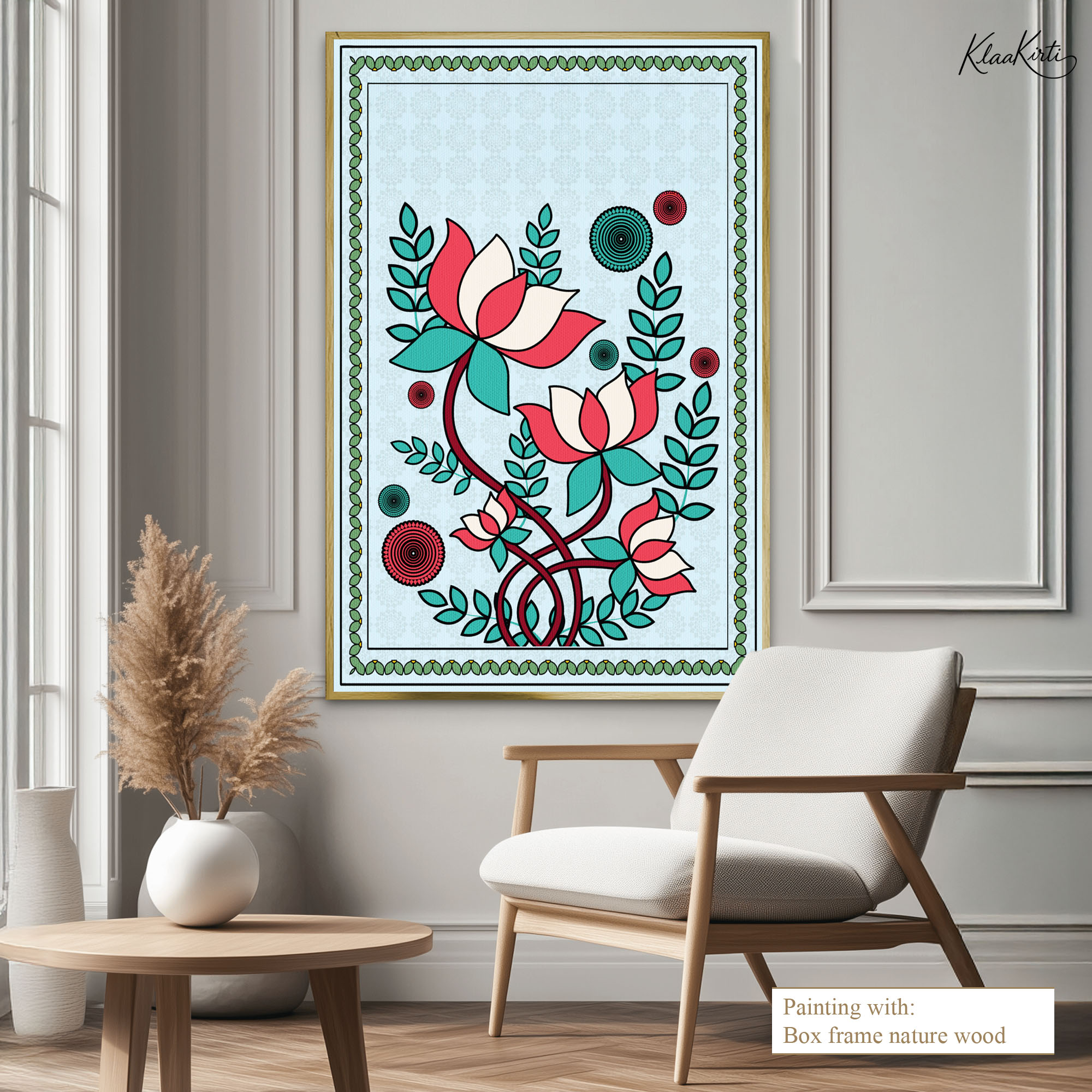• Regular art prints can vary in quality depending on the materials and printing techniques used. At Klaakirti, our digital canvas prints are created using advanced printing technology and fade-resistant inks on premium, gallery-grade canvas. This ensures sharp detail, rich color, and long-lasting durability — giving you a piece that looks and feels truly premium.