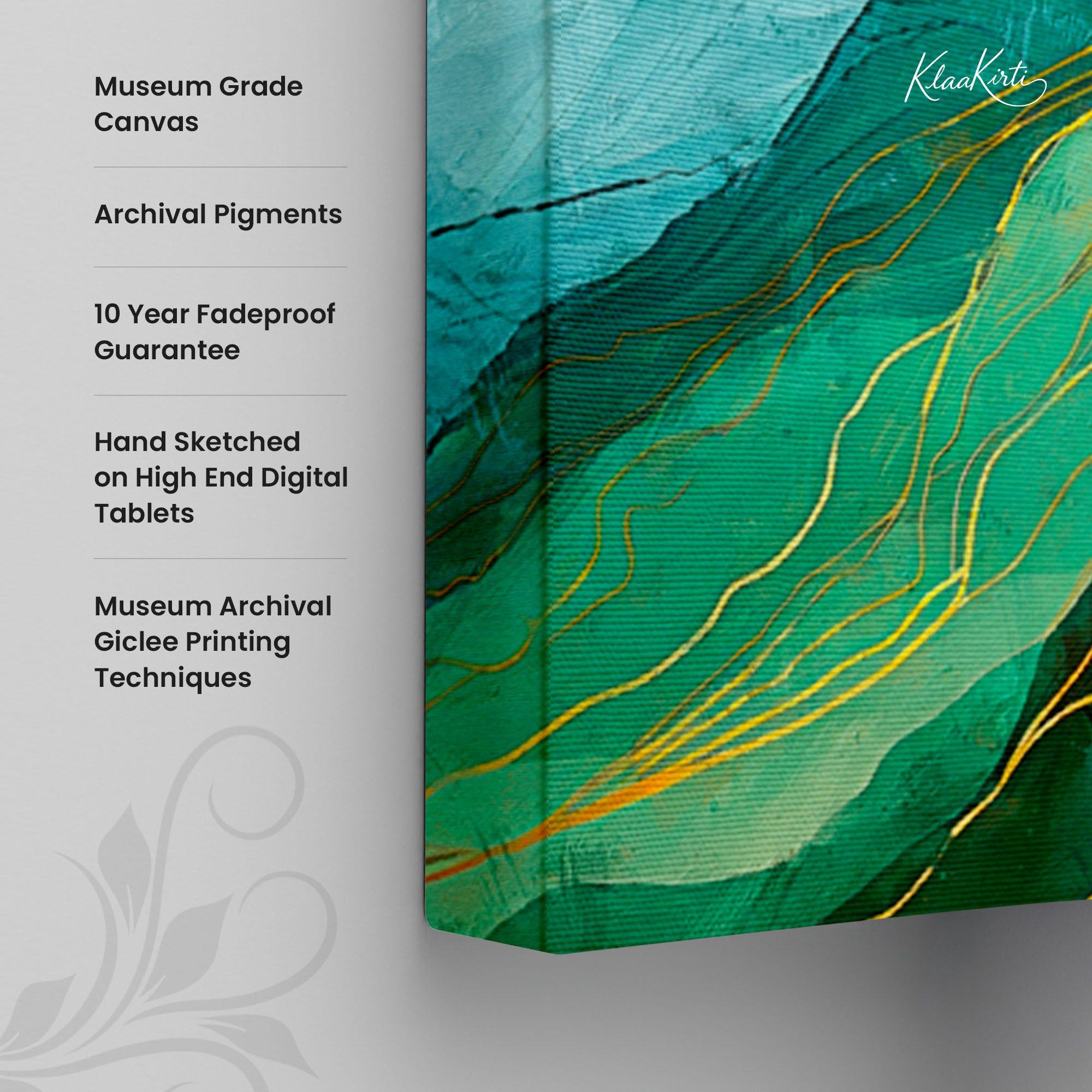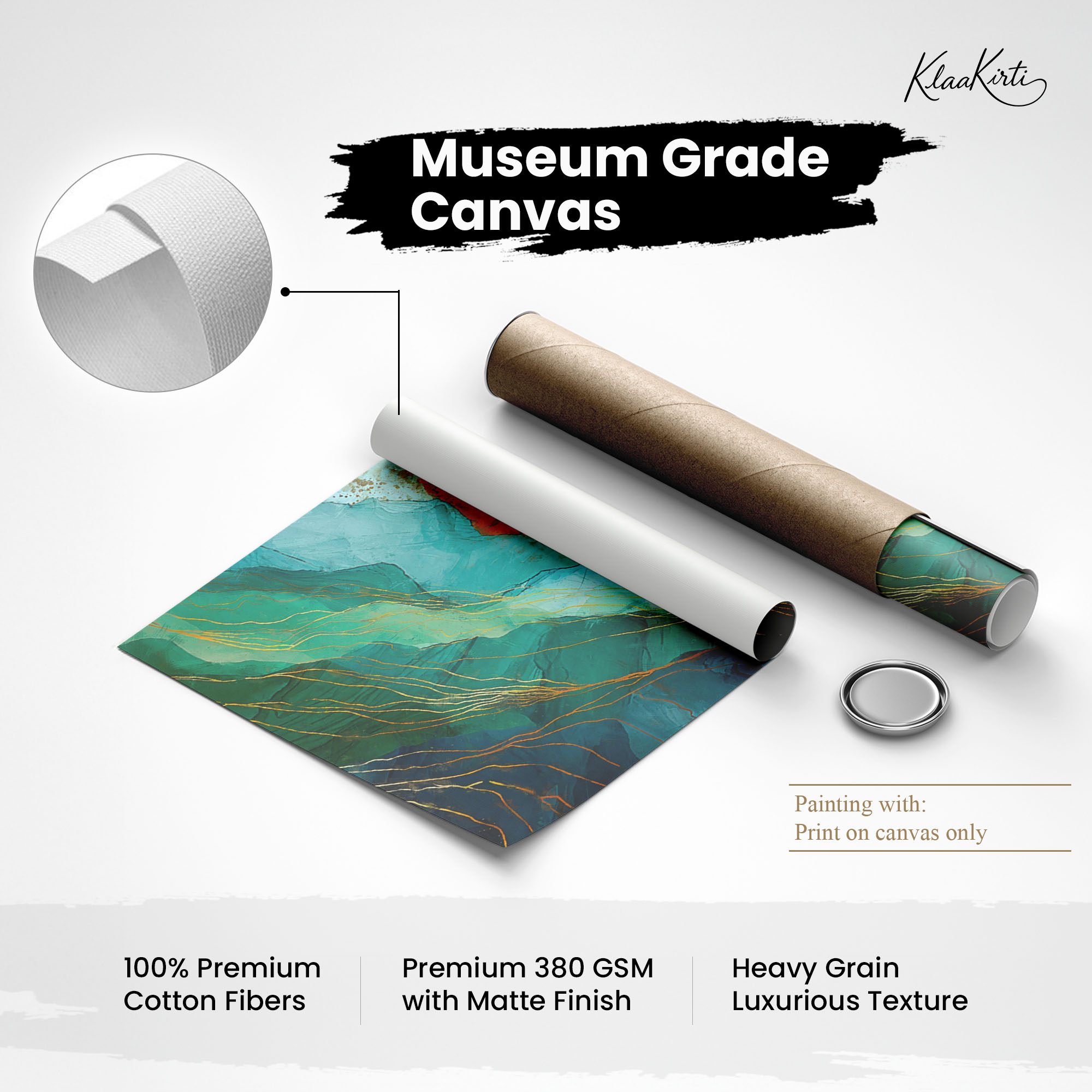 • Regular art prints can vary in quality depending on the materials and printing techniques used. At Klaakirti, our digital canvas prints are created using advanced printing technology and fade-resistant inks on premium, gallery-grade canvas. This ensures sharp detail, rich color, and long-lasting durability — giving you a piece that looks and feels truly premium.