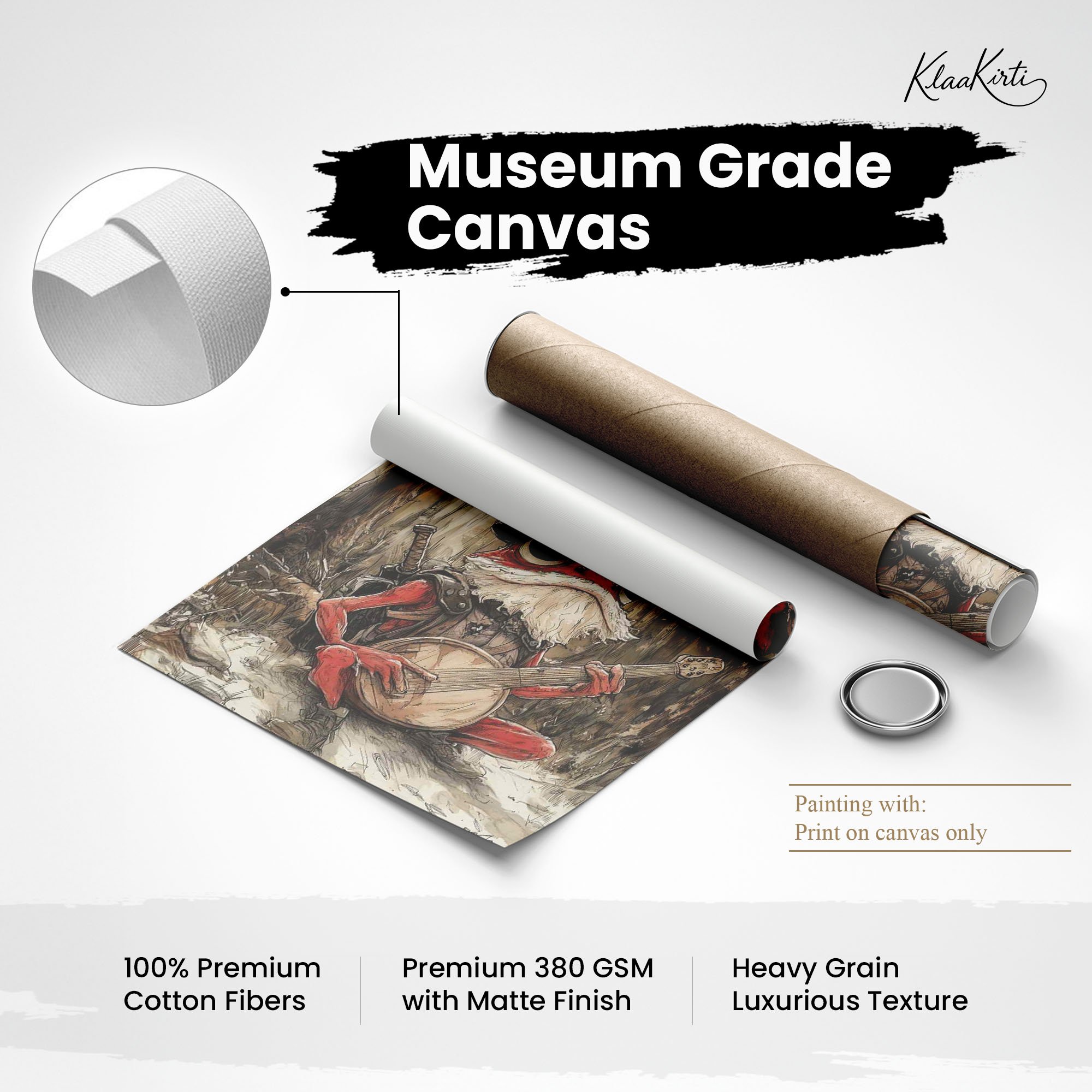 • Regular art prints can vary in quality depending on the materials and printing techniques used. At Klaakirti, our digital canvas prints are created using advanced printing technology and fade-resistant inks on premium, gallery-grade canvas. This ensures sharp detail, rich color, and long-lasting durability — giving you a piece that looks and feels truly premium.