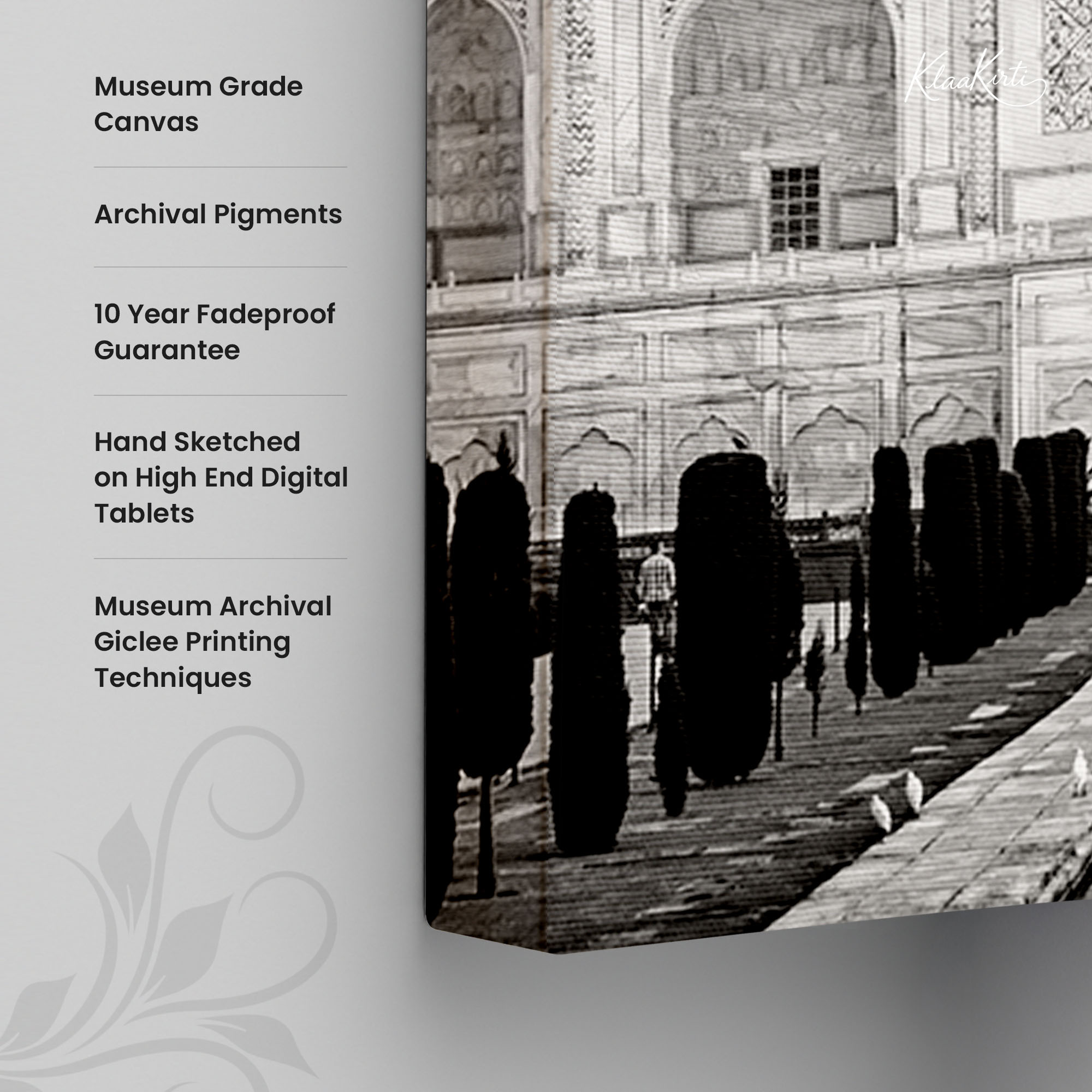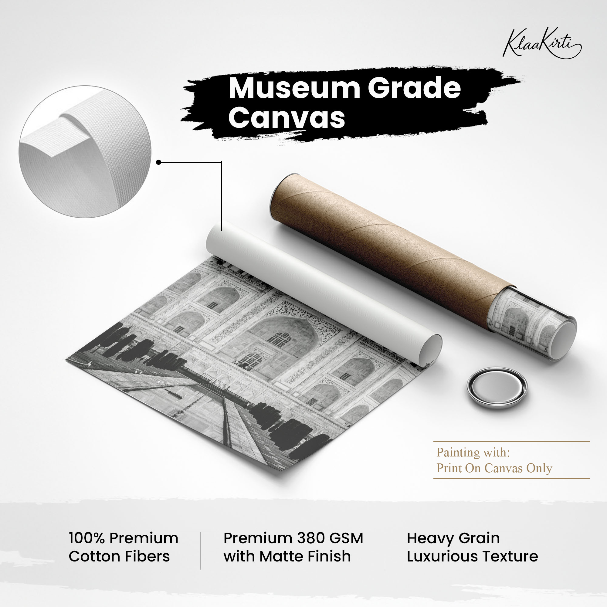 • Regular art prints can vary in quality depending on the materials and printing techniques used. At Klaakirti, our digital canvas prints are created using advanced printing technology and fade-resistant inks on premium, gallery-grade canvas. This ensures sharp detail, rich color, and long-lasting durability — giving you a piece that looks and feels truly premium.