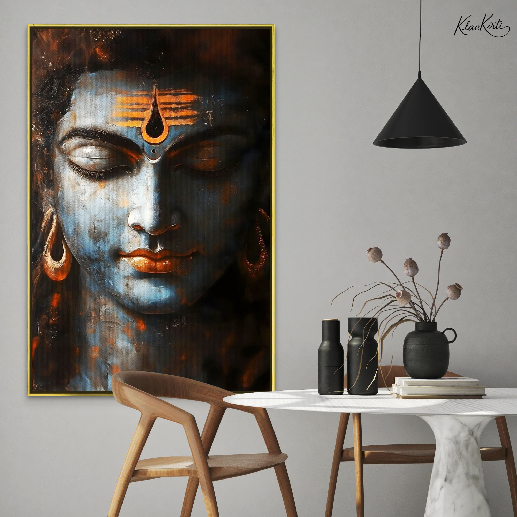 I wanted a sophisticated look for my home office. I ordered a large canvas print from Kalaakirti. The packaging was very secure (I was worried about damage during shipping), and the print quality is crystal clear. It gives a very professional yet warm touch to my workspace.