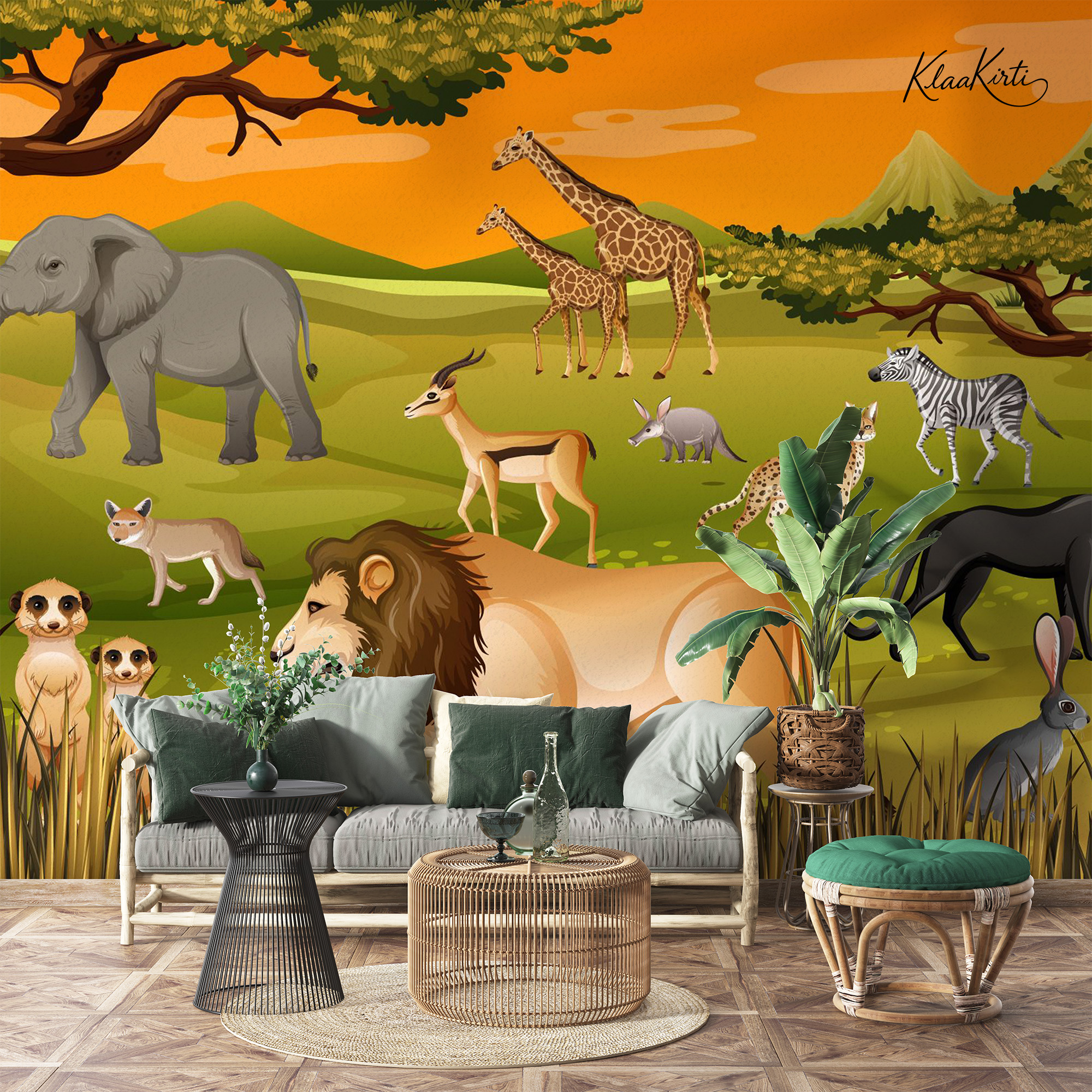 Vibrant Wildlife Safari Animal Kids Premium Wallpaper Price range: ₹125.00 through ₹195.00 per sq/ft