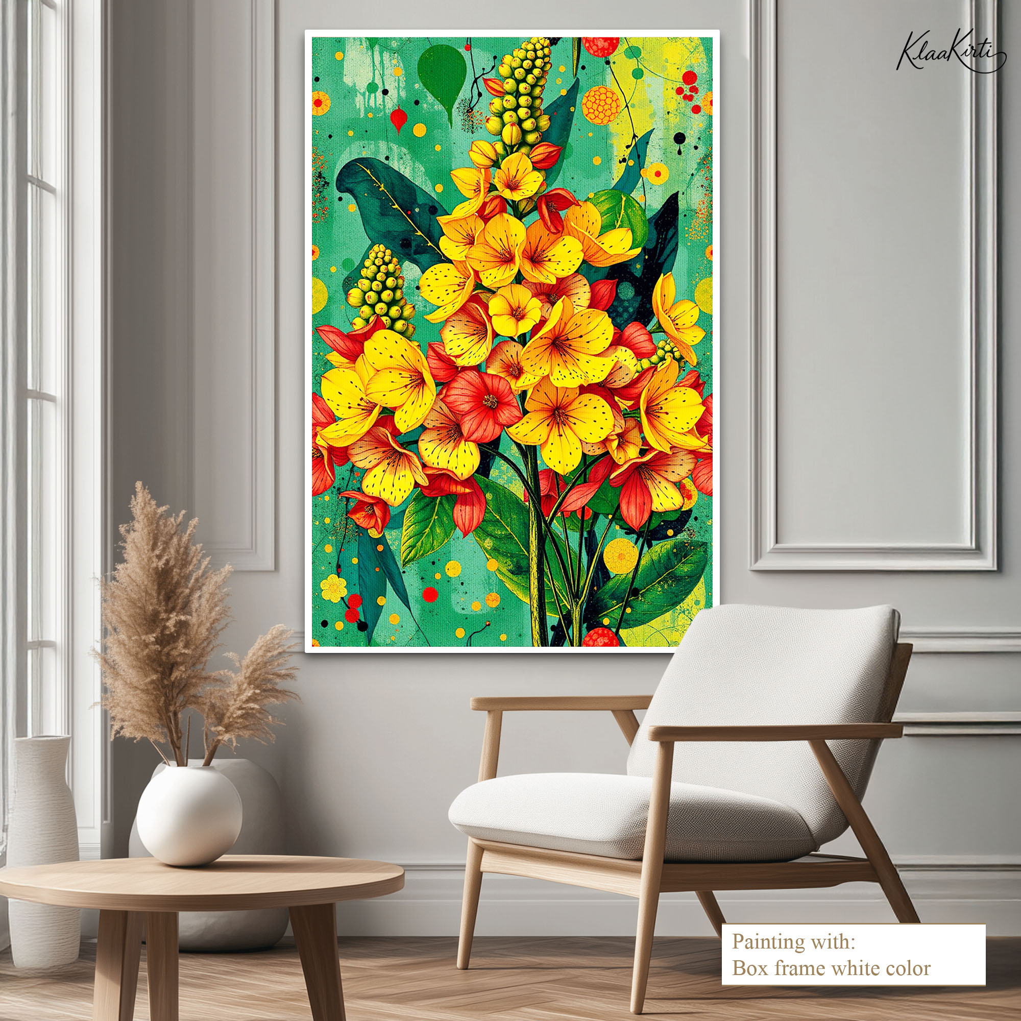 • Regular art prints can vary in quality depending on the materials and printing techniques used. At Klaakirti, our digital canvas prints are created using advanced printing technology and fade-resistant inks on premium, gallery-grade canvas. This ensures sharp detail, rich color, and long-lasting durability — giving you a piece that looks and feels truly premium.