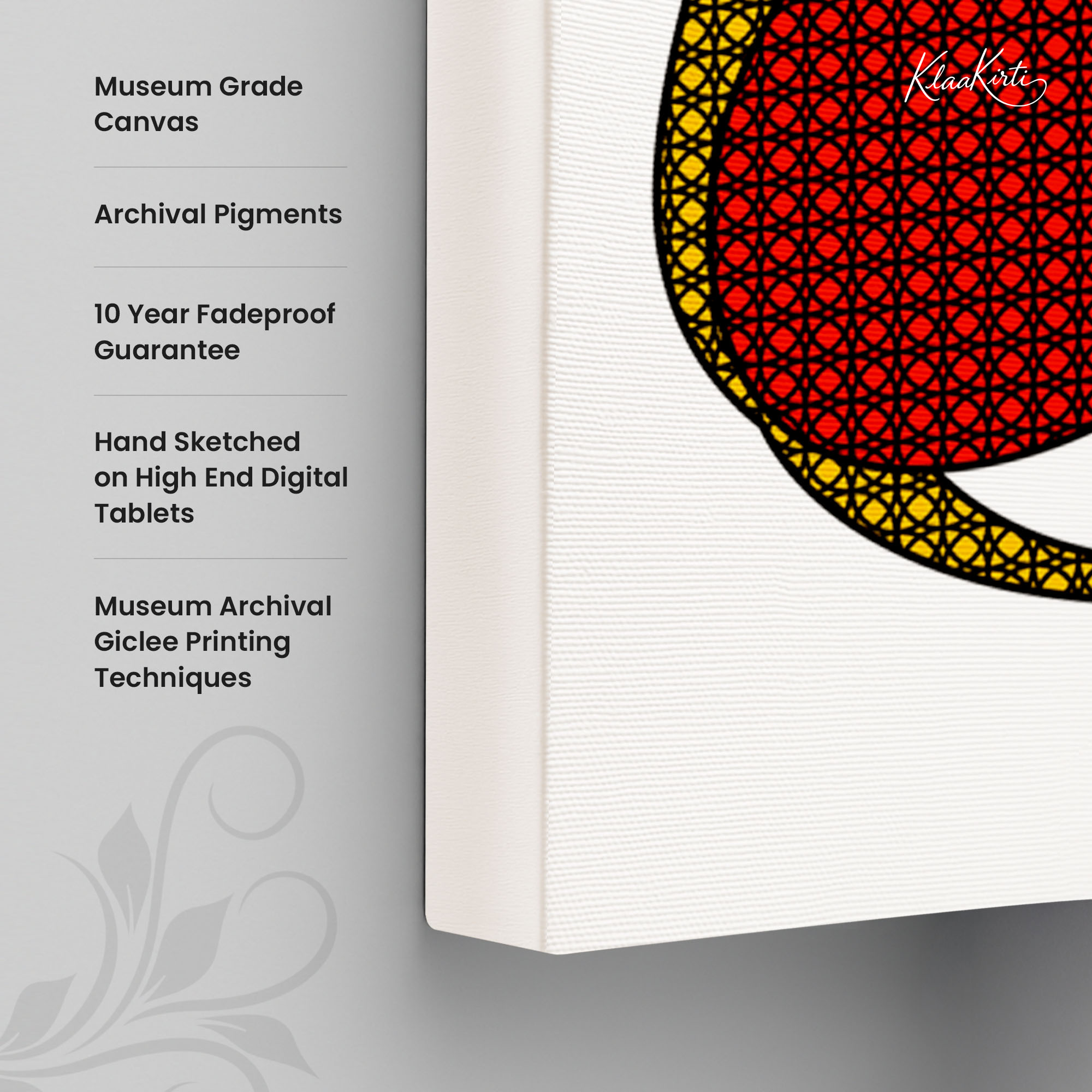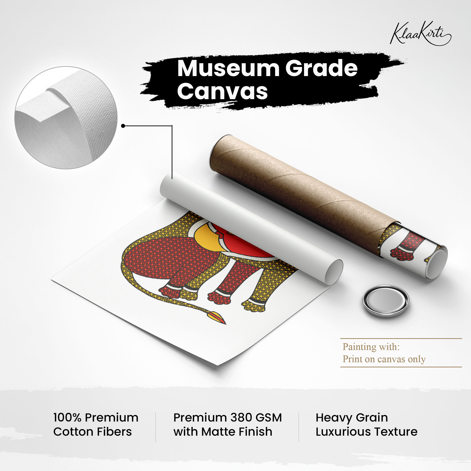 - Regular art prints can vary in quality depending on the materials and printing techniques used. At Klaakirti, our digital canvas prints are created using advanced printing technology and fade-resistant inks on premium, gallery-grade canvas. This ensures sharp detail, rich color, and long-lasting durability — giving you a piece that looks and feels truly premium.