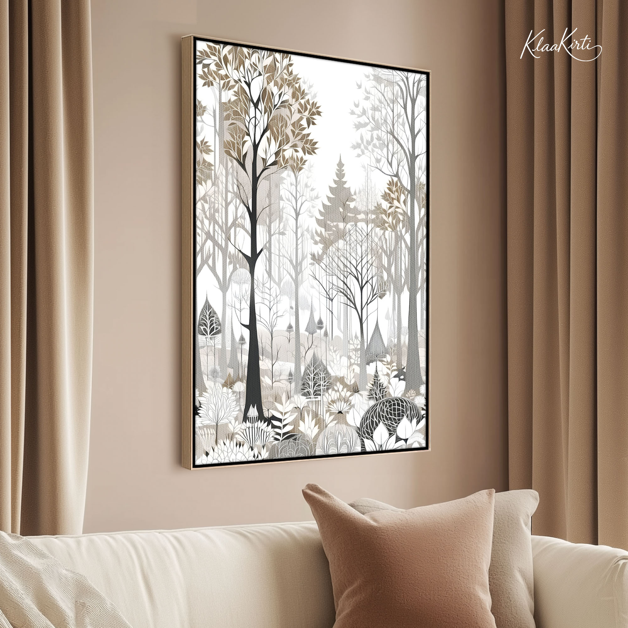 I wanted a sophisticated look for my home office. I ordered a large canvas print from Kalaakirti. The packaging was very secure (I was worried about damage during shipping), and the print quality is crystal clear. It gives a very professional yet warm touch to my workspace.