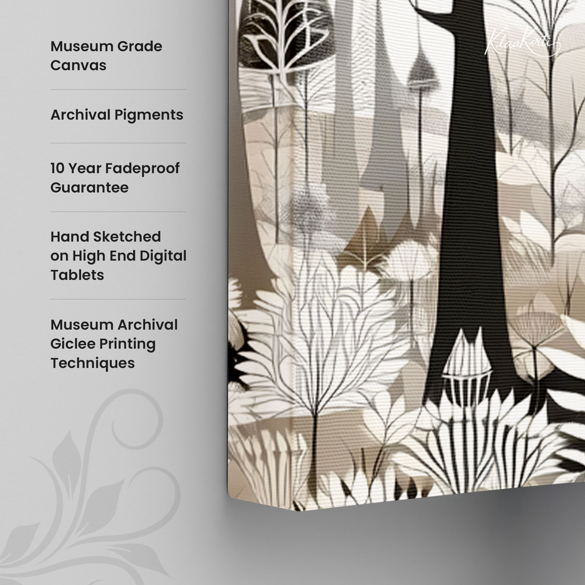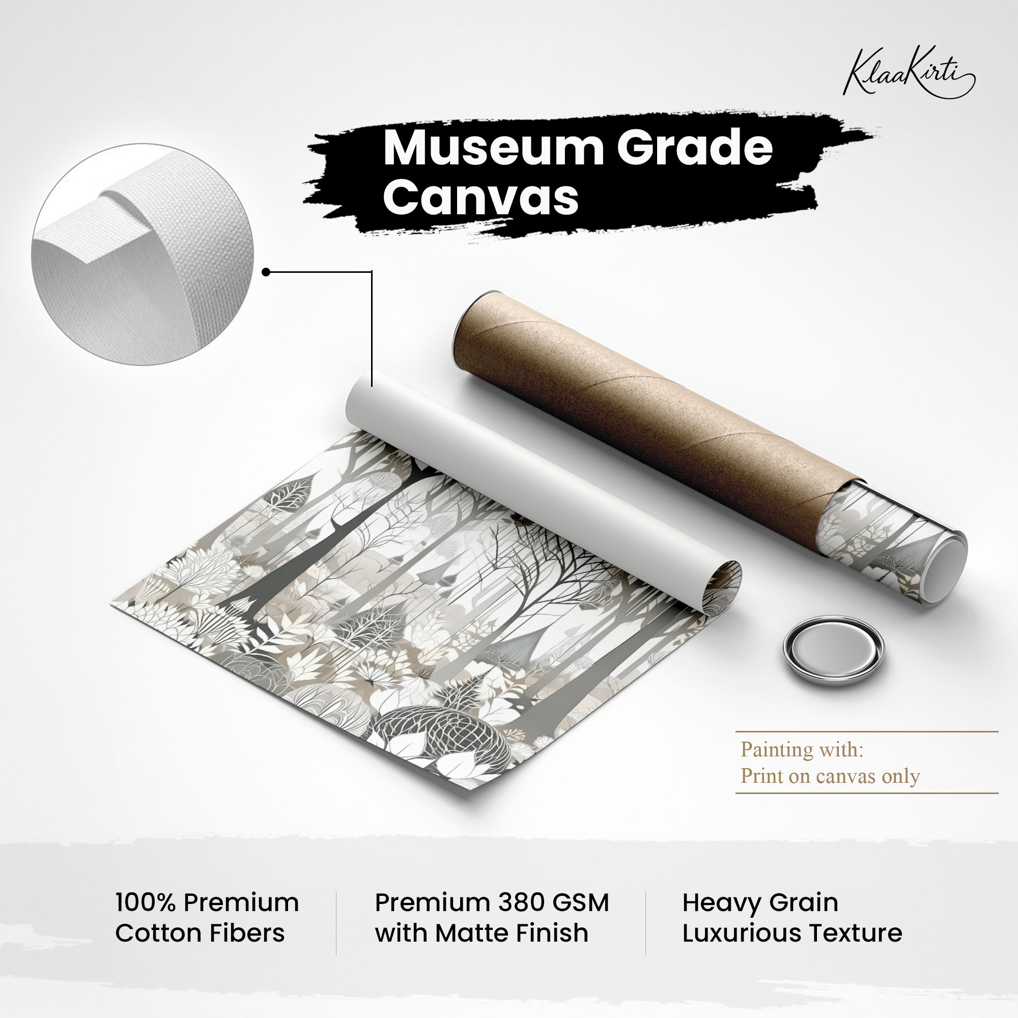 • Regular art prints can vary in quality depending on the materials and printing techniques used. At Klaakirti, our digital canvas prints are created using advanced printing technology and fade-resistant inks on premium, gallery-grade canvas. This ensures sharp detail, rich color, and long-lasting durability — giving you a piece that looks and feels truly premium.