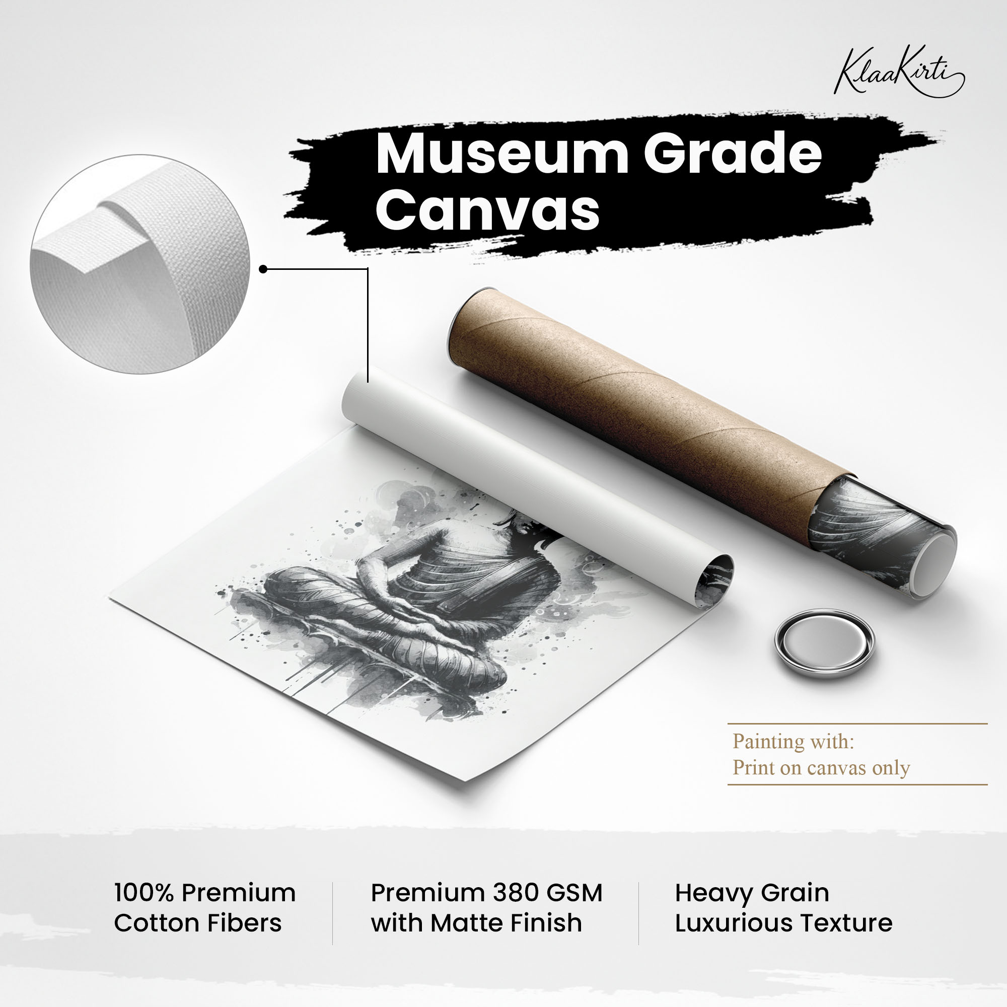 • Regular art prints can vary in quality depending on the materials and printing techniques used. At Klaakirti, our digital canvas prints are created using advanced printing technology and fade-resistant inks on premium, gallery-grade canvas. This ensures sharp detail, rich color, and long-lasting durability — giving you a piece that looks and feels truly premium.